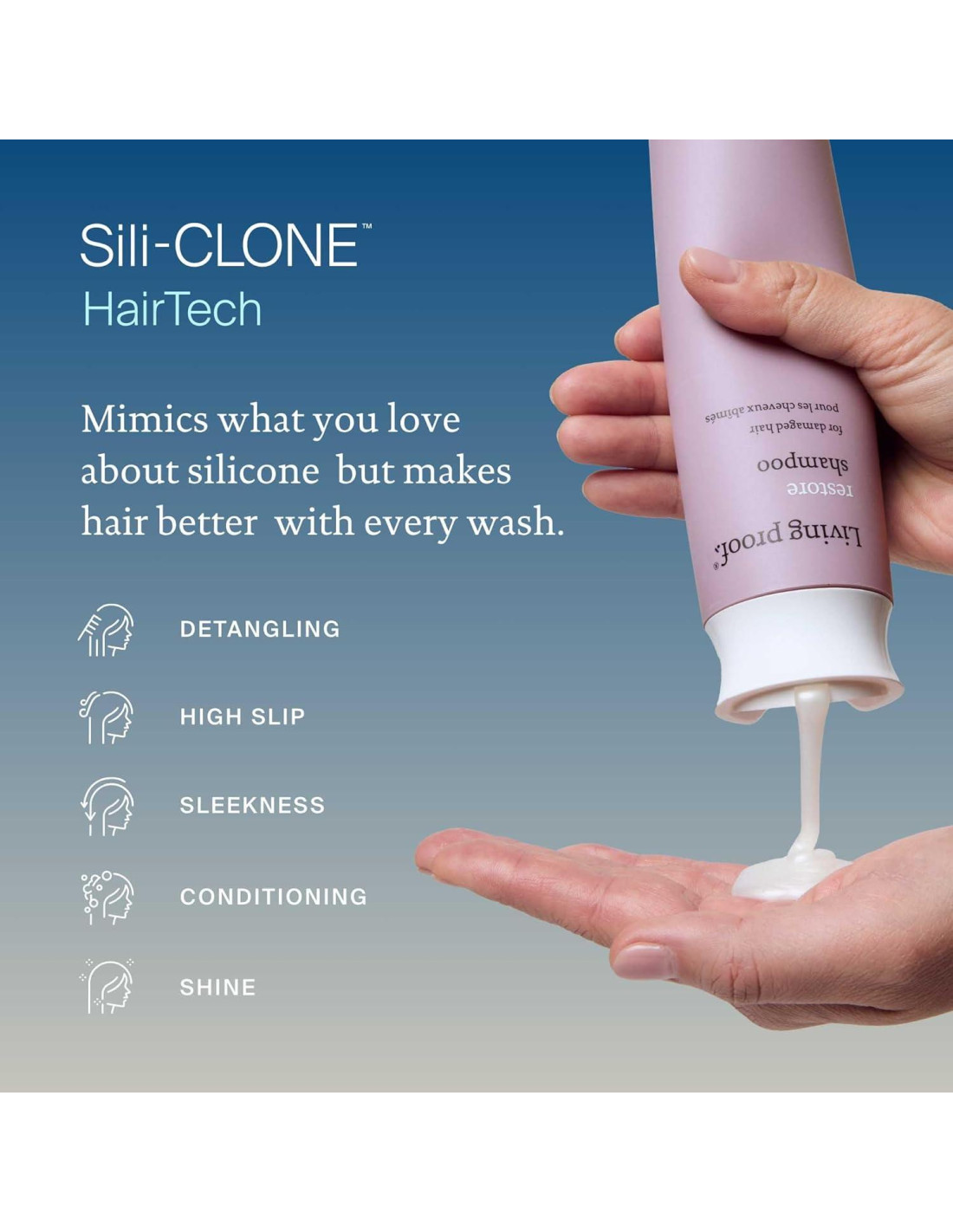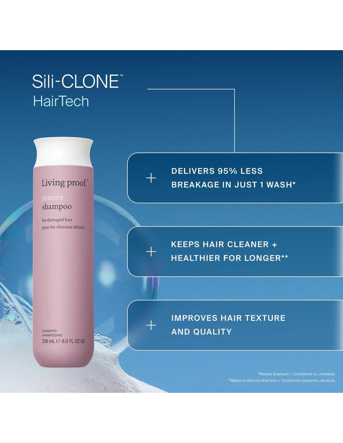¿Para quién es el Champú y Acondicionador Restore? El Champú y Acondicionador Restore es para cualquier persona con cabello teñido, tratado químicamente, debilitado o dañado. ¿Son el Champú y Acondicionador Restore libres de silicona, sulfatos y veganos? Sí, los champús de Living Proof están libres de sulfatos agresivos y diseñados cuidadosamente para limpiar suavemente con una rica y cremosa espuma, sin despojar al cabello de sus aceites naturales. (Sin SLS + SLES). También son libres de silicona y veganos. ¿Son seguros el Champú y Acondicionador Restore para cabello teñido o tratado químicamente? Sí, el Champú y Acondicionador Restore son seguros para cabello teñido o tratado químicamente. ¿Cuál es la fragancia utilizada en el Champú y Acondicionador Restore? La fragancia del Champú y Acondicionador Restore es un ligero aroma cítrico que es similar al que se encuentra en la mayoría de los otros productos de Living Proof. ¿En qué se diferencian el Champú y Acondicionador Restore de otros champús y acondicionadores reparadores en el mercado? Otros champús y acondicionadores reparadores simplemente enmascaran el daño utilizando silicona pesada en sus productos. El Champú y Acondicionador Restore ahora previenen el 70% del daño y refuerzan la fuerza del cabello, además de reparar y proteger de todas las fuentes de daño. Champú Restore Champú PhD Champú Completo Champú Sin Frizz Champú para Rizos