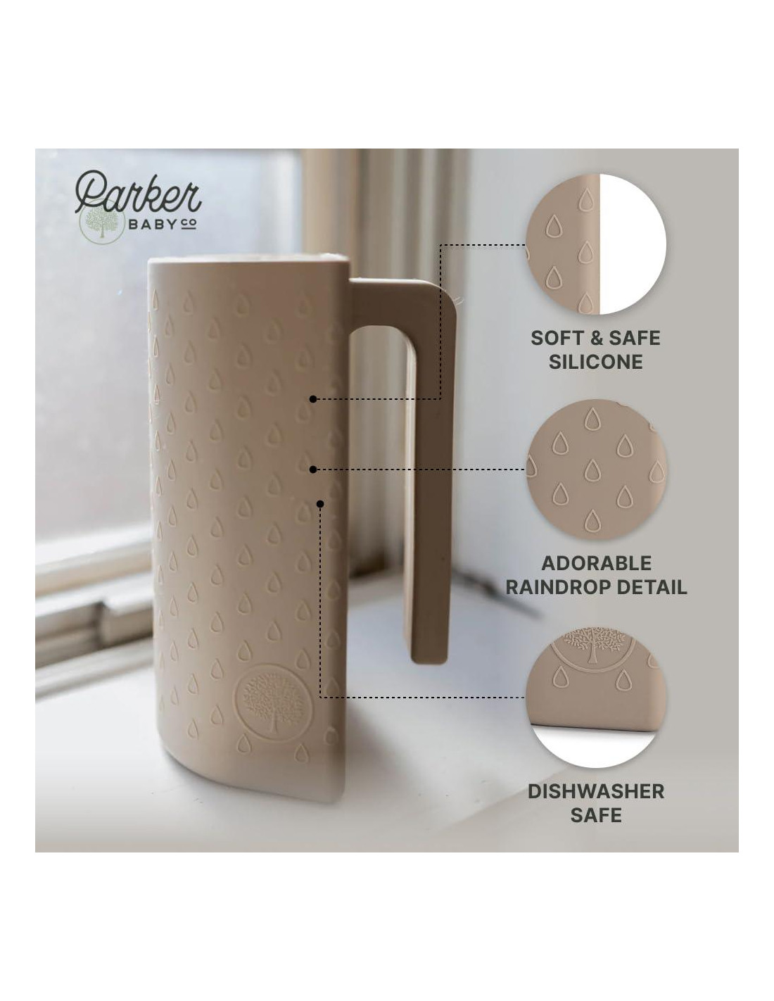- COMBINA CON TU COLECCIÓN DE BAÑO - Disponible en colores neutros y estéticos con un adorable detalle de gota de lluvia, esta taza de enjuague coordina perfectamente con el Caddy de Baño de Parker Baby y la Cubierta para Grifo (se venden por separado) para una configuración de baño elegante y funcional.