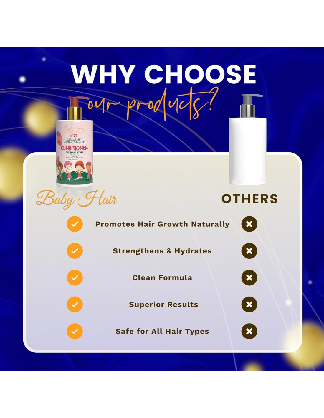 - Fortalece y Promueve el Crecimiento: Infundido con aceite de fresa y biotina, este champú y acondicionador para niños nutre profundamente el cuero cabelludo para apoyar el ciclo natural de crecimiento del cabello. Nuestro champú y acondicionador para niños pequeños ayuda a reducir la rotura y promueve un cabello más saludable y fuerte con cada uso.