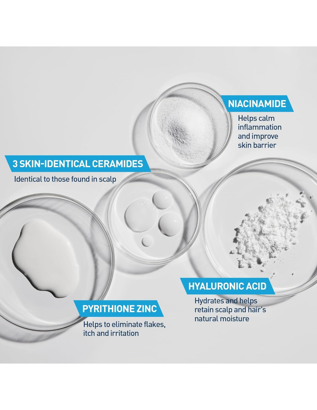 Descubre el Champú y Acondicionador Hidratante Anticaspa 2 en 1 de CeraVe, meticulosamente elaborado por dermatólogos para combatir la caspa mientras se mantiene suave con tu cuero cabelludo y cabello. Esta fórmula innovadora está infusionada con 1% de Piritiona de Zinc, que ayuda eficazmente a eliminar hasta el 100% de las escamas visibles y calma la picazón y la irritación con el uso regular, asegurando un cuero cabelludo cómodo. La fórmula suave pero potente está diseñada para limpiar e hidratar sin eliminar la humedad esencial, haciéndola perfecta para todo tipo de cabello, incluyendo aquellos con cabello tratado con color. Está enriquecida con tres ceramidas esenciales, niacinamida y ácido hialurónico, que trabajan en armonía para mantener el equilibrio de humedad y calmar la piel. Champú y acondicionador anticaspa para mujeres y hombres. El champú 2 en 1 para el alivio del cuero cabelludo picante está libre de sulfatos, MIT, colorantes, parabenos y fragancias, este champú y acondicionador para cuero cabelludo seco es ideal para cueros cabelludos sensibles, asegurando que no haya irritación mientras se mantiene la salud y suavidad de tu cabello. Su formulación equilibrada en pH y probada contra alergias proporciona idoneidad incluso para los cueros cabelludos más sensibles. Este acondicionador y champú para la caspa actúa como un tratamiento para el cuero cabelludo escamoso. Este champú y acondicionador 2 en 1 es adecuado como champú y acondicionador para cabello tratado con color. Para obtener los mejores resultados, incorpora este tratamiento para el cuero cabelludo picante en tu rutina de cuidado del cabello al menos dos veces por semana o sigue las recomendaciones de tu médico. También se puede usar a diario para aquellos que deseen una aplicación frecuente. Experimenta los beneficios duales de la eliminación de la caspa y la hidratación profunda con el Champú y Acondicionador Hidratante Anticaspa 2 en 1 de CeraVe, y disfruta de un cabello saludable, suave y nutrido.