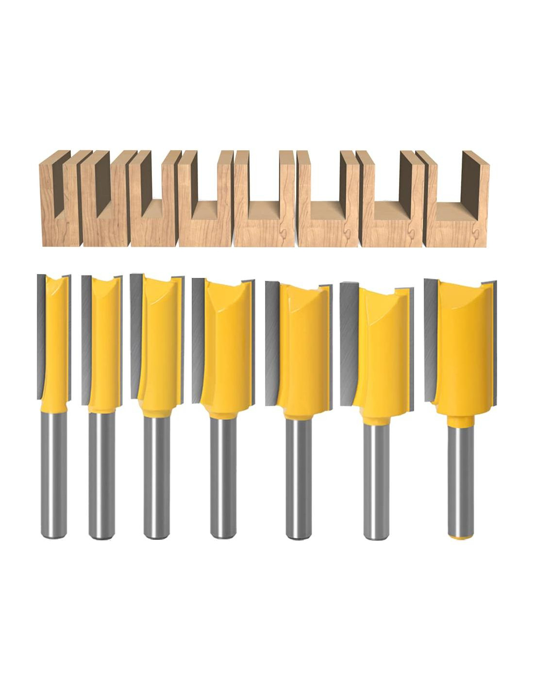 - [Multi-Especificación] Este juego de brocas incluye 7 piezas de diferentes tamaños de cortadores de fresado rectos, con un vástago redondo universal de 1/4 de pulgada (6.35 mm), un juego de brocas podría satisfacer 7 tipos de necesidades de ranurado.