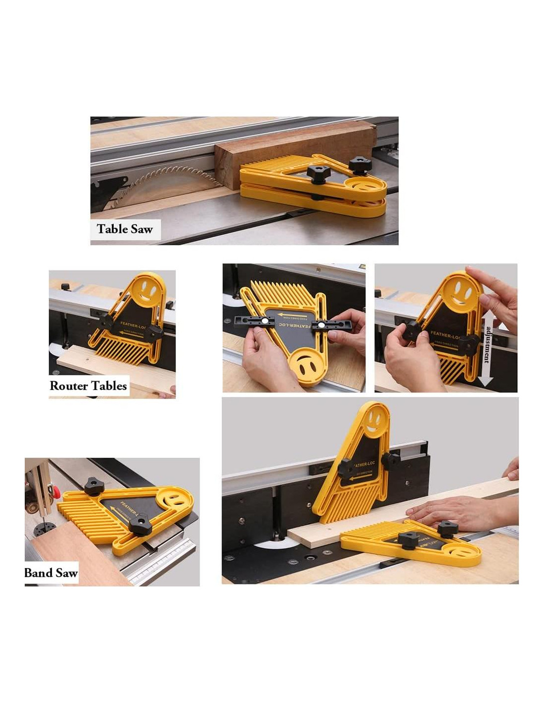 - DURADERO. Los featherboards están hechos de un cuerpo de plástico compuesto extremadamente duradero y resistirán años de uso intensivo en su taller de carpintería.