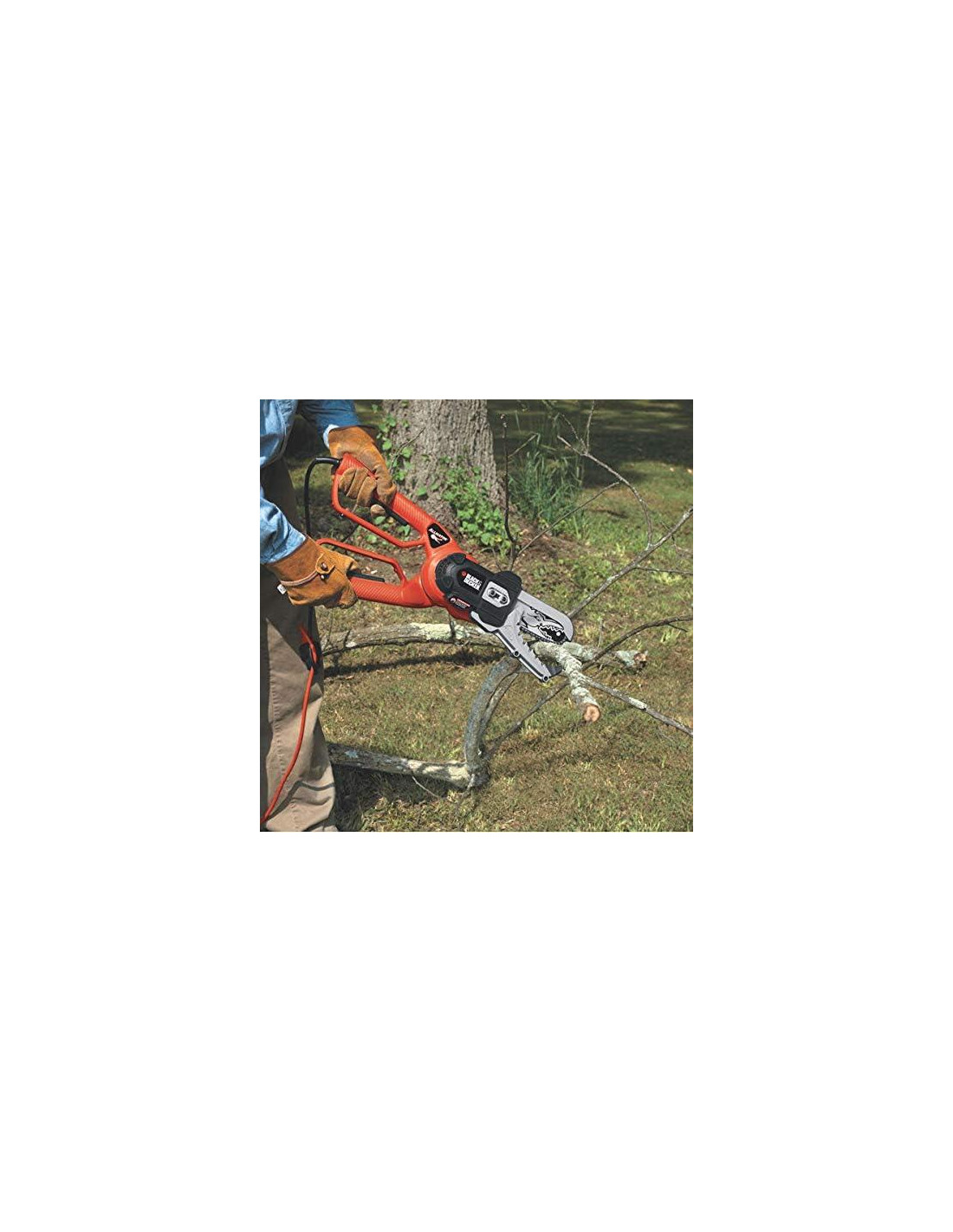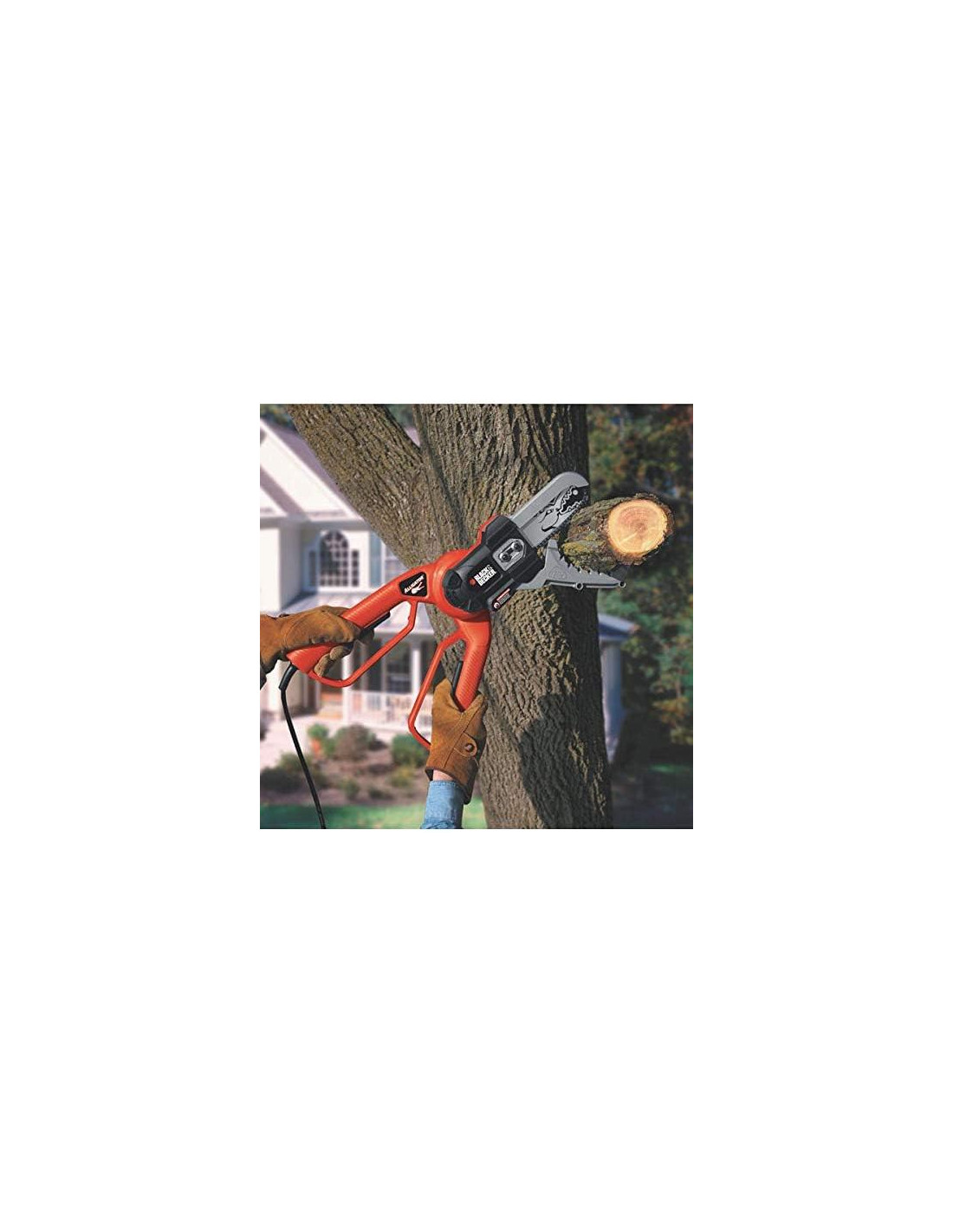 Descripción del Producto Corta ramas de árboles, recorta ramas crecidas y embellece tu jardín y espacio exterior como nunca antes con la sierra de cadena eléctrica Lopper Alligator de 4.5 Amperios de BLACK+DECKER. Las innovadoras mordazas de sujeción agarran y cortan la madera en un solo movimiento fácil, similar a unas tijeras. Gracias a una capacidad de corte de hasta 4 pulgadas (10,16 cm), así como al potente motor de 4.5 Amperios y a la resistente barra y cadena, esta sierra de cadena eléctrica puede manejar ramas y troncos gruesos que las podadoras manuales no pueden. Además, las protecciones metálicas cubren las mordazas para una mayor seguridad, y el diseño con cable significa que nunca te quedarás sin energía. Amazon.com La sierra de cadena eléctrica Lopper Alligator LP1000 de Black & Decker de 4.5 Amperios es una herramienta ideal para podar ramas de árboles de hasta cuatro pulgadas (10,16 cm) de diámetro, cortar ramas en piezas manejables y cortar ramas caídas después de tormentas. Su motor de 4.5 Amperios proporciona un corte potente y rápido, y sus innovadoras mordazas de sujeción agarran y cortan en un solo movimiento fácil. También incluye una barra de corte y cadena de alta resistencia para ofrecer un corte rápido de ramas y troncos gruesos. Con una longitud de barra de seis pulgadas (15,24 cm) y un peso de 6.5 libras (2,95 kg), esta sierra de cadena eléctrica cuenta con una garantía limitada de 2 años. El artículo en una caja sellada de fábrica nueva incluye solo aceite. P.when('A').execute(function(A) { A.on('a:expander:toggle_description:toggle:collapse', function(data) { window.scroll(0, data.expander.$expander[0].offsetTop-100); }); }); Del Fabricante Toma un gran bocado de árboles caídos, ramas de árboles y maleza con el Lopper Alligator, una herramienta de corte revolucionaria que proporciona un rendimiento de corte similar a una sierra de cadena en una herramienta fácil de usar y no intimidante. Con su acción similar a unas tijeras, las resistentes mordazas metálicas del Lopper Alligator se agarran a troncos y ramas gruesas, así como a ramas y vides más pequeñas, y luego las corta con facilidad. Una vez que las ramas y troncos están en el suelo, el Lopper Alligator es perfecto para cortarlos en piezas manejables para desechar o para tu chimenea. El Lopper Alligator es ideal para la poda de árboles, limpieza de maleza, limpieza después de tormentas, corte de leña y más, y es una gran alternativa a las sierras de cadena, podadoras manuales, sierras de mano y tijeras. Las mordazas del Lopper Alligator ofrecen el máximo control en el corte. Las resistentes protecciones metálicas que cubren las mordazas te protegen de la cadena de corte y se cierran inmediatamente sobre las cuchillas una vez que el corte está completo. Las mordazas del Lopper Alligator también significan que no se desliza como las sierras de cadena al comenzar a cortar. El Lopper Alligator corta de lado a lado en lugar de de arriba hacia abajo como con las sierras de cadena tradicionales. Este corte lateral evita enterrar la cadena de corte en la tierra mientras corta, lo que puede afilar rápidamente una sierra de cadena regular. El Lopper Alligator también hace que sea mucho más rápido y fácil cortar troncos, ya que no tienes que apoyarlos en caballetes o en otros troncos. Simplemente agárralos con las mordazas del Lopper Alligator y corta directamente. La tensión automática de la cadena del Lopper Alligator mantiene su rendimiento de corte en óptimas condiciones. Simplemente afloja los tornillos de retención de la barra con la llave incluida y la barra automáticamente elimina la holgura y ajusta la tensión de la cadena perfectamente. Ver más