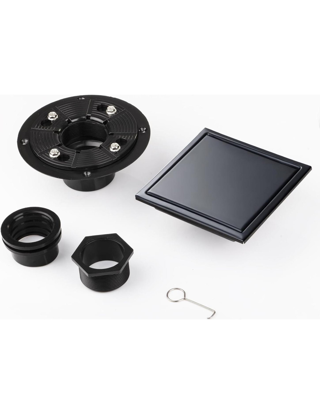 - [Instalación] Alto desplazamiento de la salida del desagüe cuadrado negro, se adapta al sistema de base de desagüe NO HUB de EE. UU. Es adecuado para su uso en baños, cocinas, garajes, piscinas, sótanos y otras áreas para drenar el agua. No es compatible con el Kit de Ducha Schluter.