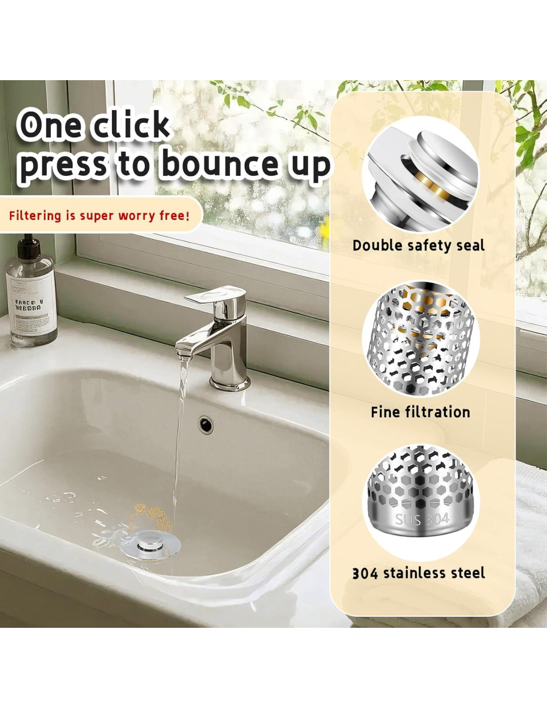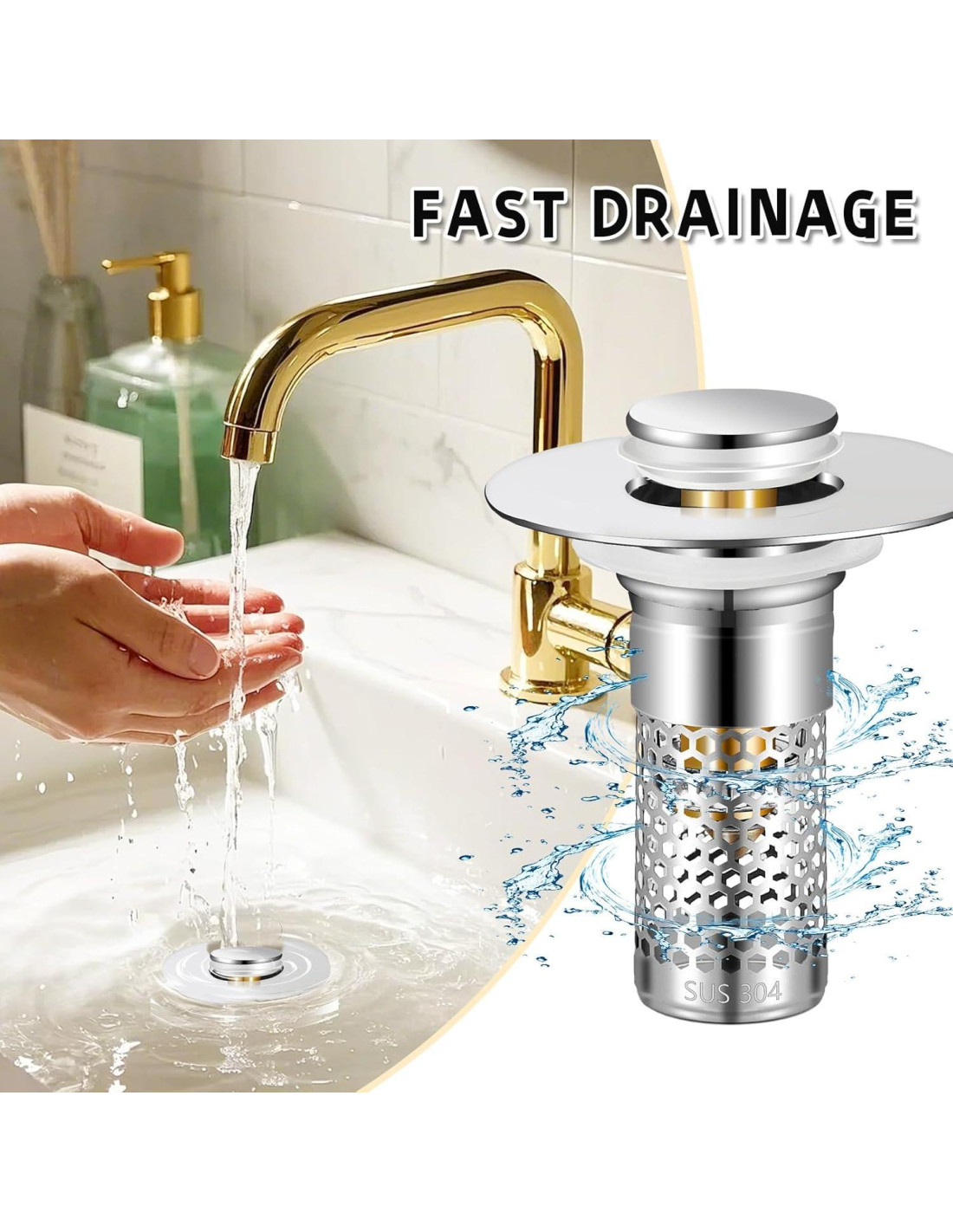 - Mejorado en Colador: El Tapón de Lavabo de Baño Difiere del Drenaje de Botón Regular, Este Tapón de Drenaje Universal Tiene un Colador de Cesta Antitaponamiento, Colador de Lavabo de Baño que Recoge el Cabello de Manera Ordenada y Previene que el Drenaje se Tape, Cosas como Joyería, Anillos, Suciedad, etc. No Entrarán en el Drenaje.