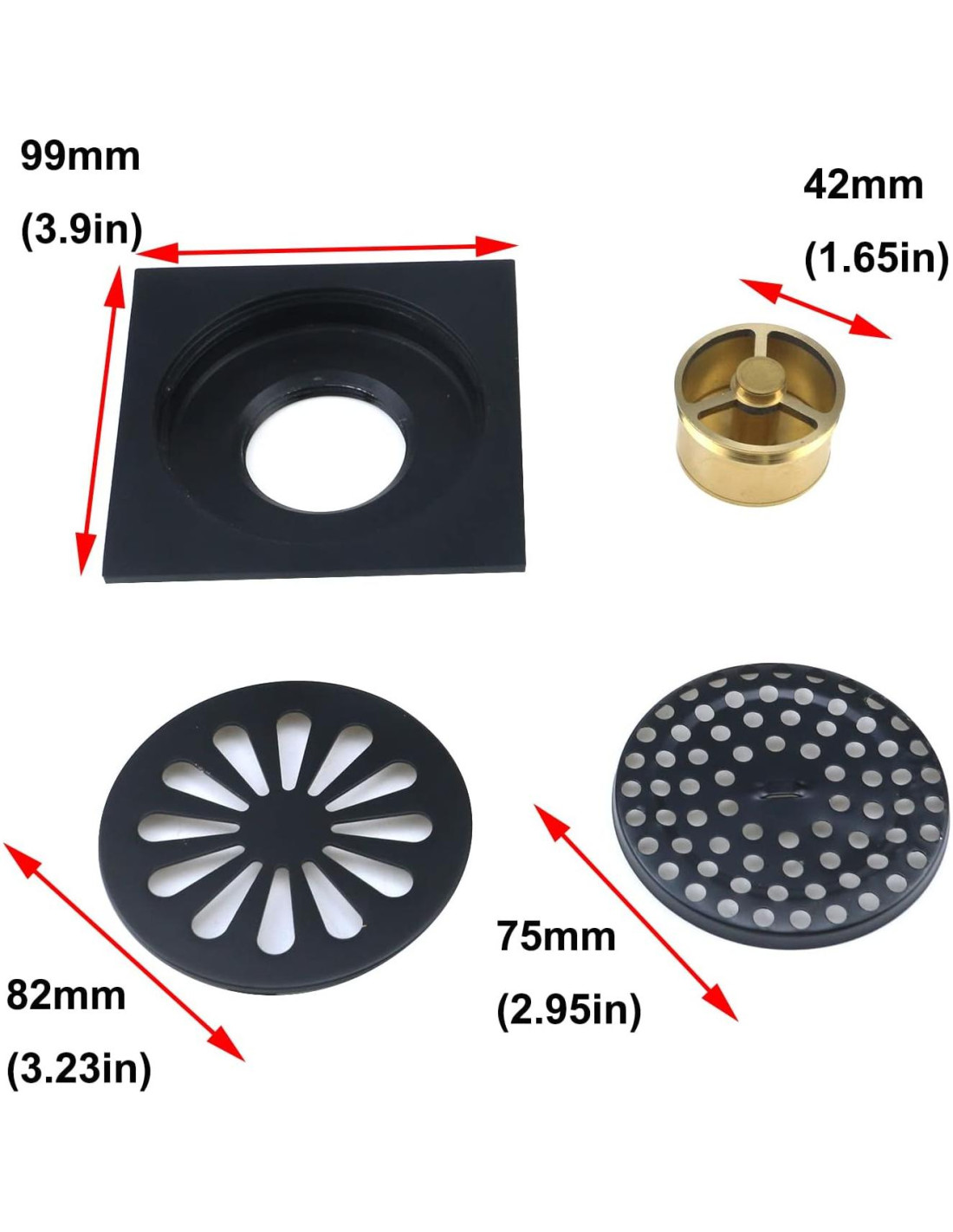 Nos especializamos en herramientas de hardware de alta calidad, utensilios de cocina y productos de decoración del hogar para profesionales y entusiastas del bricolaje. Material del cuerpo: Todo de cobre. Material del filtro: Acero inoxidable. Acabado de superficie: Pulido de precisión. Proceso de tallado, pulido de precisión, sin lesiones en los pies. Es verdaderamente meticuloso, suave y no puede ser imitado por otros. Gran salida, asegura velocidad de drenaje, cuanto mayor sea el volumen de agua, más rápido será el drenaje. La rejilla y el filtro de cabello removibles facilitan la limpieza y el mantenimiento. Este perfecto desagüe de piso es ideal para la mejora y construcción de su hogar. Puede mantener la salud de su casa de manera efectiva. Dimensiones: 99x99mm / 3.9" x 3.9"(L*W) Diámetro de salida inferior: 639 mm / 1.54"