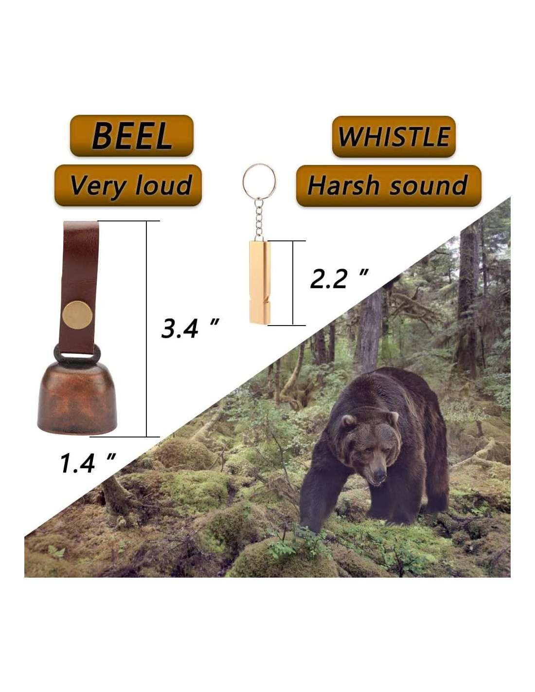 - El paquete incluye: 2 campanas de oso + 2 silbatos de emergencia