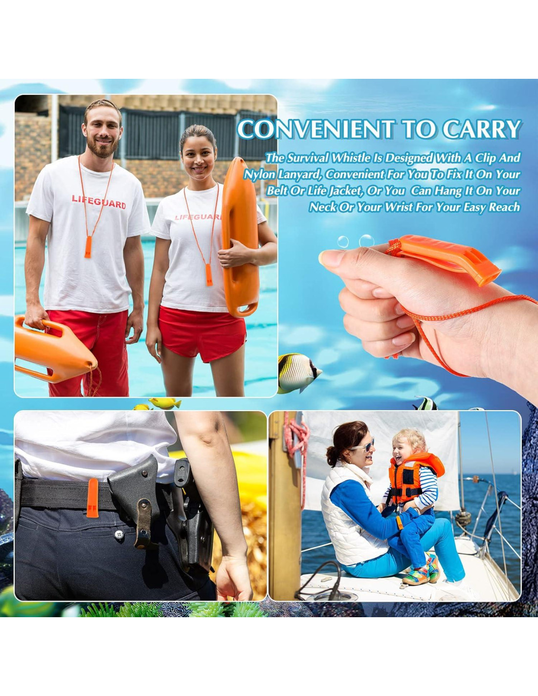 - Amplia Gama de Aplicaciones: los silbatos de plástico pueden emitir un sonido agudo, ideales para camping, senderismo, caza, mochileo, pesca, natación, navegación, kayak, eventos deportivos marinos, y también para entrenamiento de mascotas