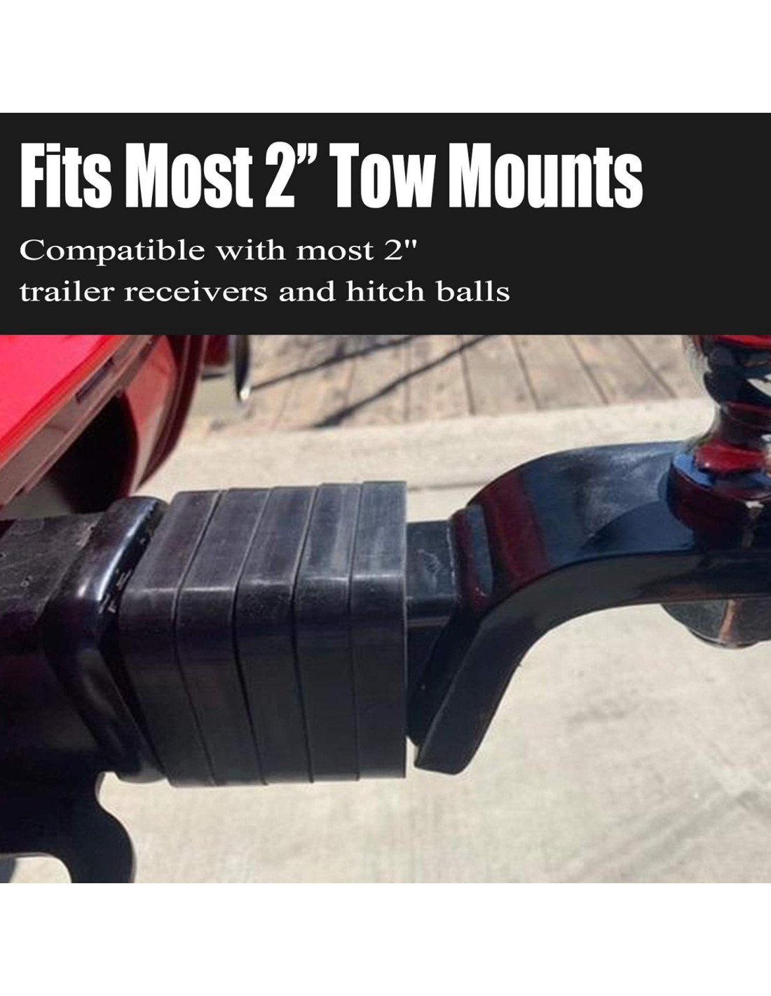 - TAMAÑO DE AJUSTE: el silenciador actúa como una almohadilla universal para la mayoría de los receptores de remolque de 2'' y bolas de enganche, como Receptores Traseros, Montajes Frontales, 5ta Rueda, Gooseneck, Pintle, Parachoques, Enganche de Distribución de Peso y más