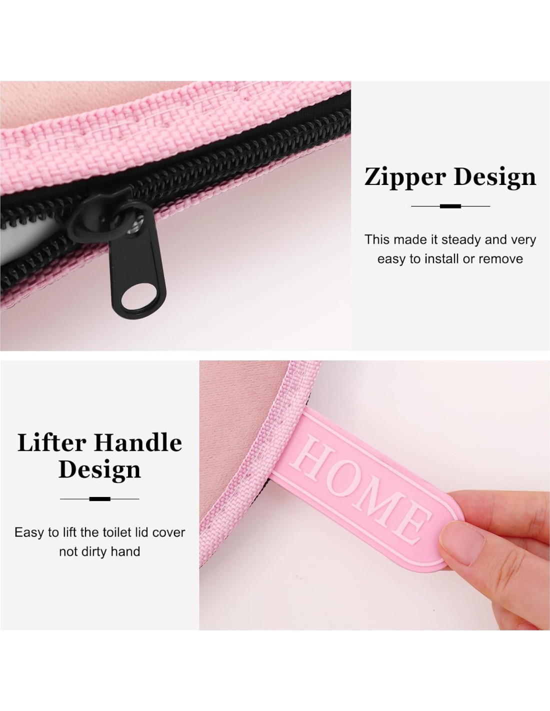 - Diseño de Cremallera y Mango Elevador: Nuestra funda de asiento de inodoro está diseñada con un cierre de cremallera, resistente y fácil de instalar o quitar. Y las fundas de inodoro vienen con un mango, fácil de levantar el asiento de inodoro, sin ensuciarse las manos.