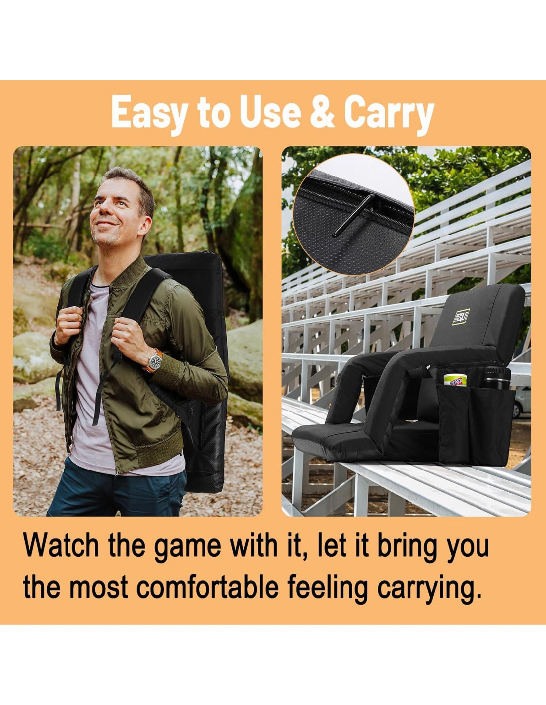 - Confort Inigualable: Experimenta un nuevo nivel de confort con nuestro respaldo acolchado extra grueso y reposabrazos, asegurando que cada momento pasado en el asiento de estadio con masaje calentado sea pura felicidad. Di adiós a la fatiga y los calambres mientras nuestra función de masaje promueve un flujo sanguíneo saludable, manteniéndote fresco y energizado incluso durante períodos prolongados de sentado