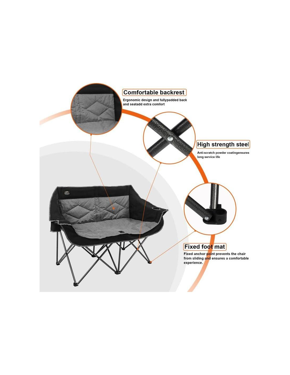 - ASIENTO CARA A CARA CON TU SER QUERIDO - Nuestra silla de camping para 2 personas tiene un asiento curvado único y un respaldo más largo para mayor espacio y comodidad. Perfecta para conversaciones íntimas y abrazos con tus seres queridos en viajes de camping.