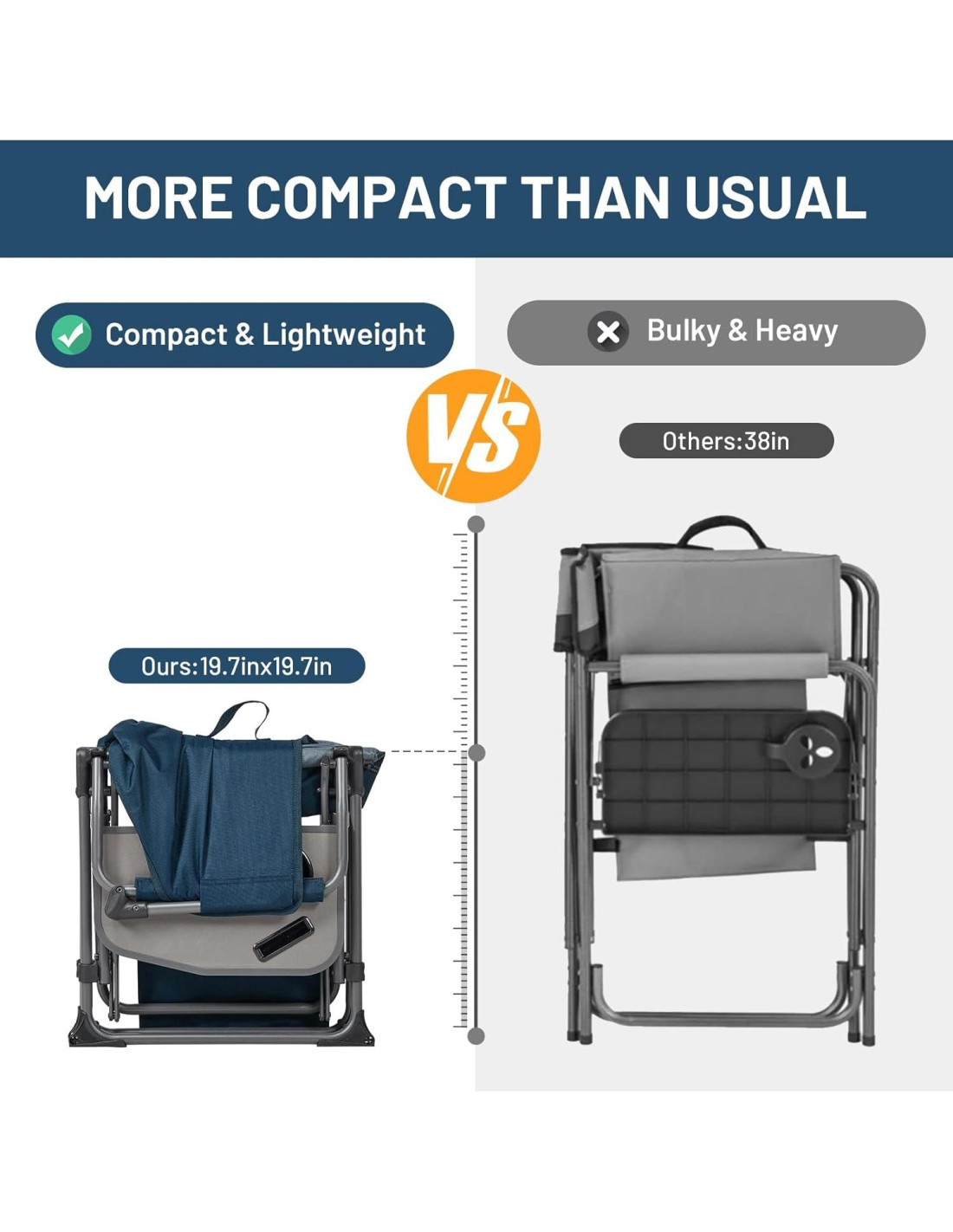 - DISEÑO MÁS PORTÁTIL: Compacto y que ahorra espacio con un tamaño plegado de 50.17 x 50.17 x 15.24 cm, esta silla de camping pesa solo 4.74 kg, asegurando un fácil transporte en sus aventuras al aire libre.