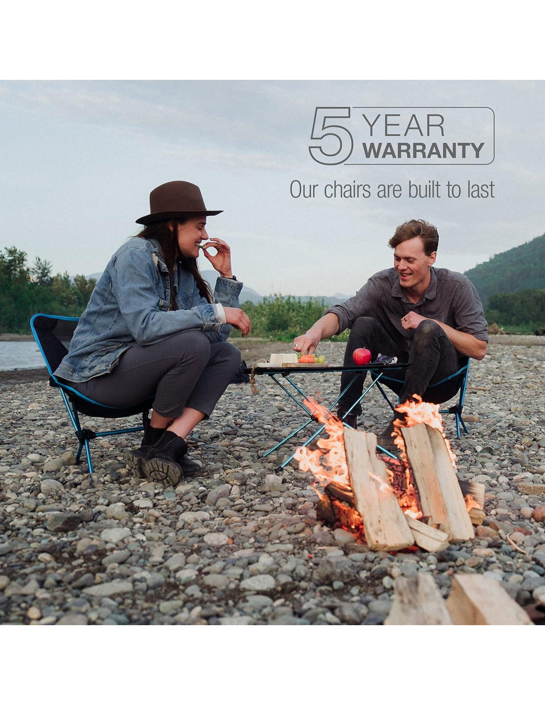 - Silla de camping y senderismo ultraligera, plegable y de respaldo alto; cuenta con bolsillos laterales para pequeños esenciales y reposacabezas ajustable para colocar la almohada