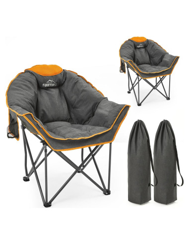 - Paquete versátil de 2 en Naranja: ¡Prepárate para aventuras compartidas! Este esencial paquete de 2 sillas de jardín acolchadas de color naranja es ideal para camping, senderismo, eventos deportivos o tu jardín