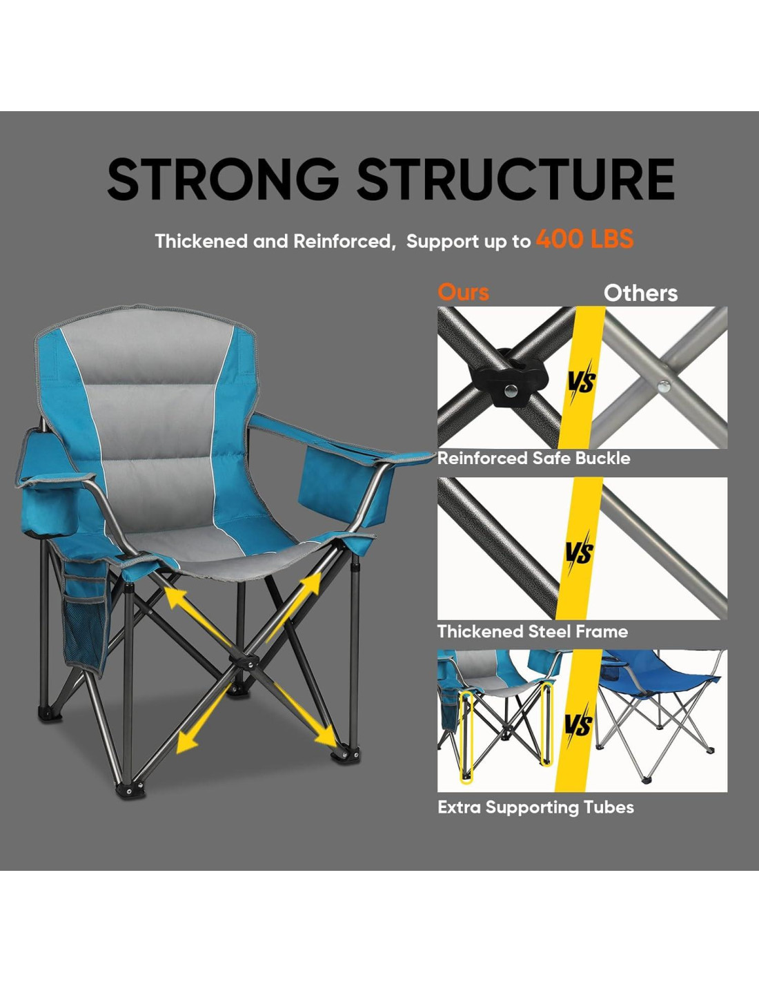 - DISEÑO CONVENIENTE Nuestras sillas de camping para adultos están especialmente diseñadas con bolsillos laterales convenientes, portavasos y bolsillos de enfriamiento para que almacenes tus artículos. Además, la bolsa de enfriamiento está hecha de material aislante térmico, que puede mantener efectivamente la temperatura baja y mantener tus bebidas frías todo el tiempo. Estos diseños cuidadosos pueden proporcionarte una gran conveniencia.