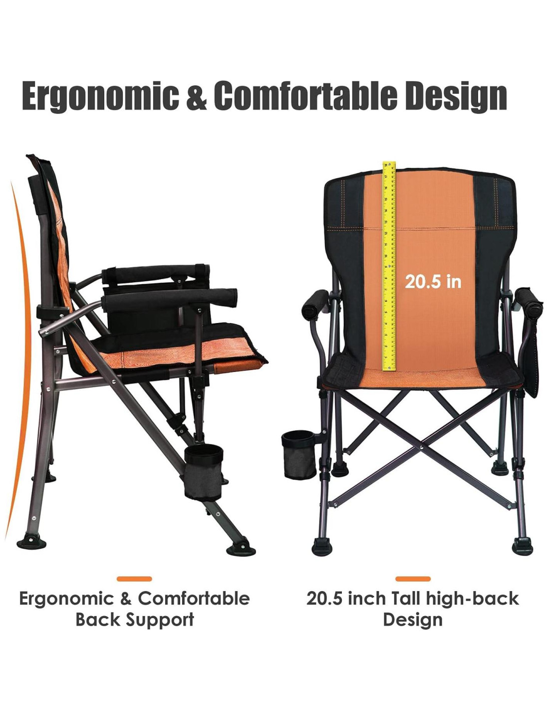 - TAMAÑO GRANDE Y RESPALDO ALTO Silla de Camping Plegable de Gran Tamaño mide 22.8(L)X22.8(W)X37.4(H) pulgadas (57.79 cm x 57.79 cm x 94.98 cm), peso solo 9.9lbs (4.49 kg). La amplia área de asiento y el diseño de respaldo alto aseguran la comodidad de esta silla.