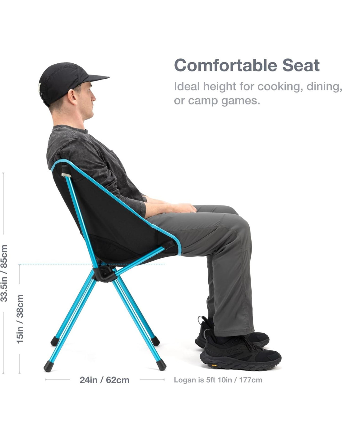 - La silla de camping ligera y compacta tiene una altura estándar de silla de 38 centímetros para una máxima comodidad al comer en el campamento o en el patio trasero