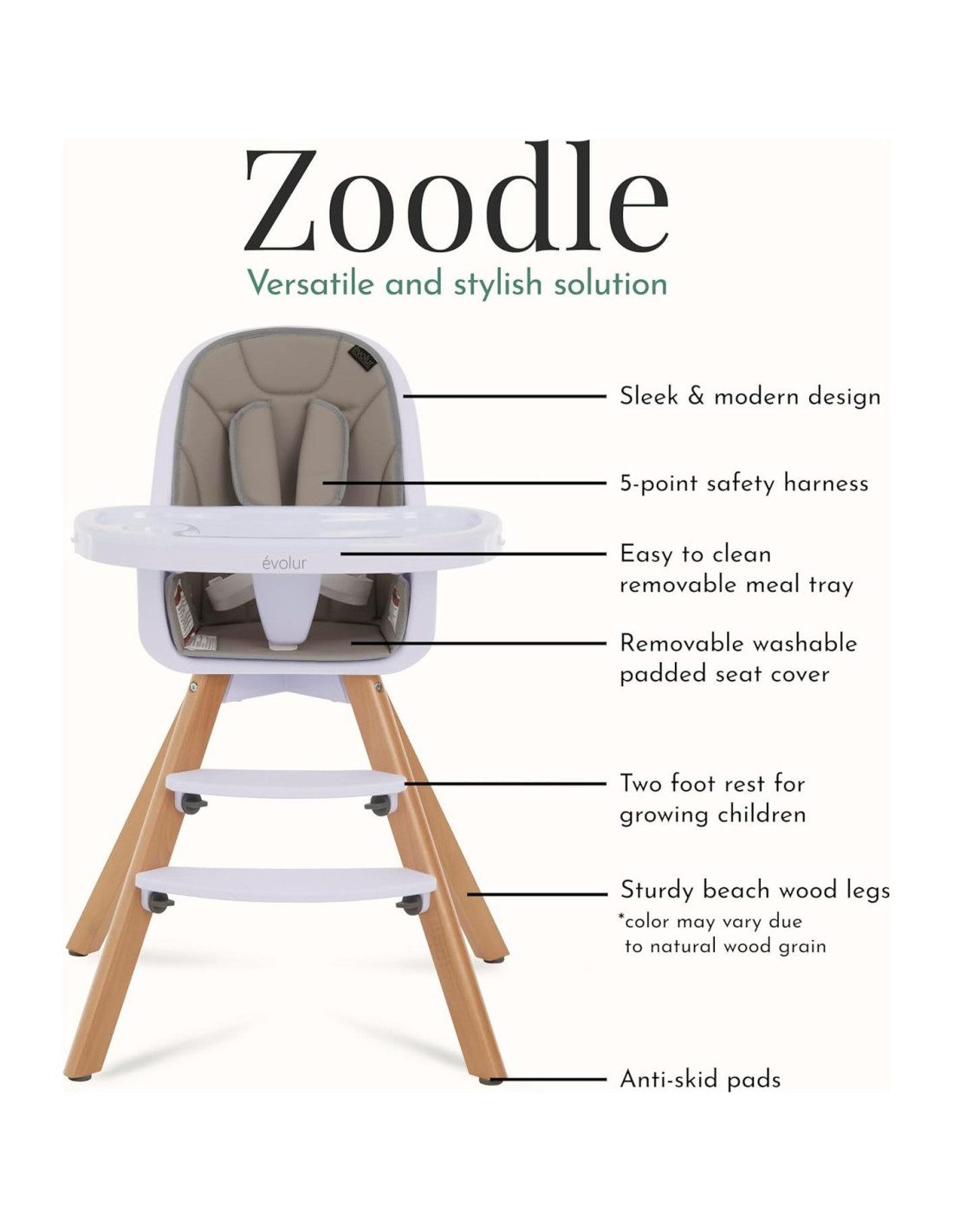 - MULTIFUNCIONALIDAD: ¡La galardonada Silla Alta Evolur Zoodle crece con tu bebé! Úsala como silla alta en la mesa, cuando tus pequeños comienzan a comer por sí mismos. Conviértela en una silla para niños pequeños a medida que tu pequeño se vuelve independiente.