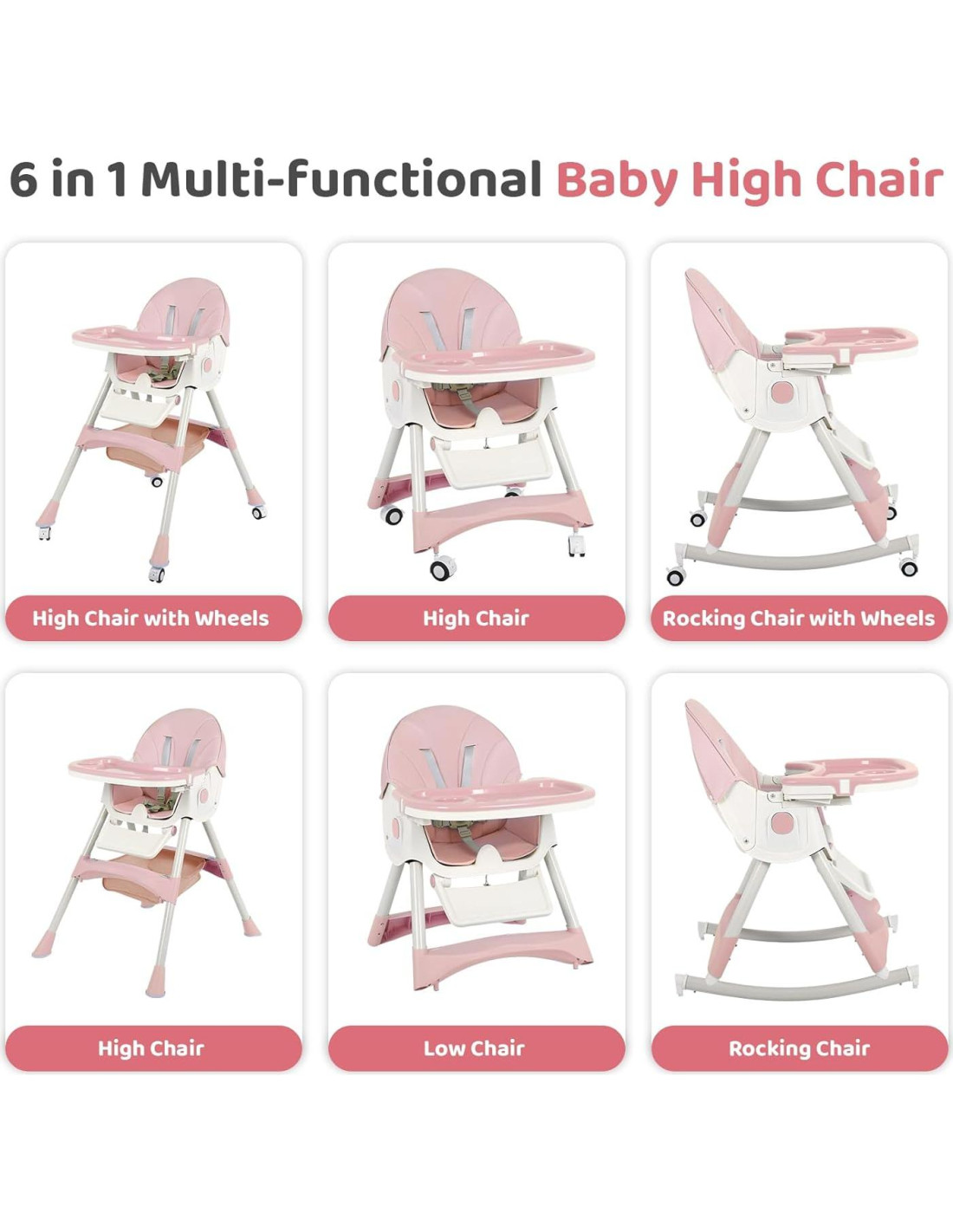 - Alturas Ajustables: Esta silla alta versátil ofrece dos configuraciones de altura para una transición sin problemas entre una silla alta y una silla de juego. Con cuatro posiciones de reclinación, garantiza la comodidad óptima para su pequeño mientras come o se relaja.