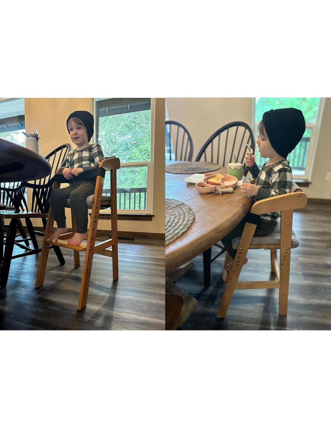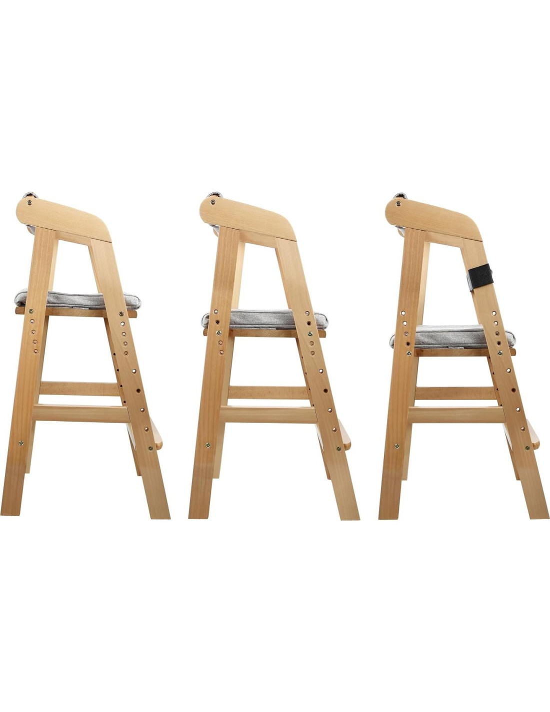 Silla Alta de Madera PandaEar para Niños, Silla Alta Ajustable para Alimentación con Cojín Desmontable y Escalones para Comedor, Comer, Estudiar