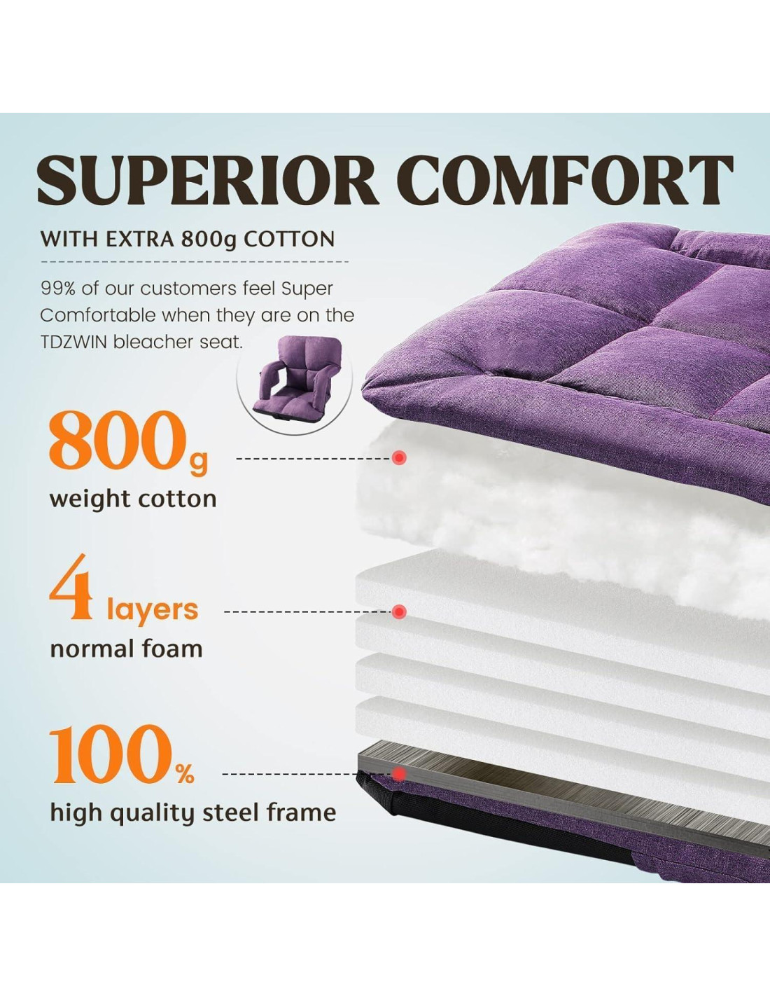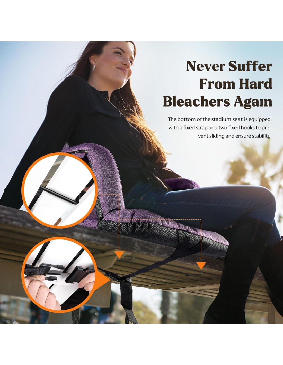 - FÁCIL DE LLEVAR, SIN INSTALACIÓN - Las sillas de graderío con respaldo y cojín están listas para usar sin procedimientos de instalación complicados. Equipadas con dos correas de hombro acolchadas, ligeras para viajar, liberan tus manos, fáciles de llevar en la espalda.