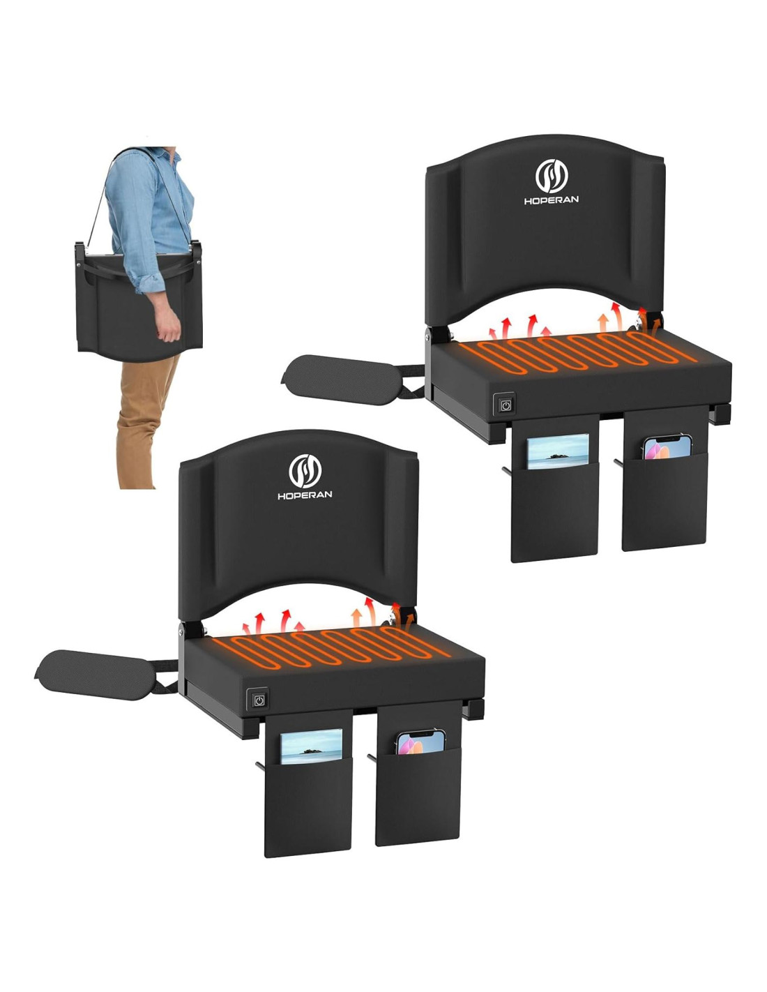 - [Estabilidad Mejorada] Las sillas de gradas calentadas con respaldo y cojín aseguran tu seguridad con sus ganchos de plegado dual y tiras de goma antideslizantes en la parte inferior. Estas características anclan de manera segura los asientos de gradas a varias gradas, ya sean de metal o madera, evitando cualquier movimiento no deseado. Ya sea que te inclines hacia atrás o animes con entusiasmo, ten la seguridad de que el asiento permanece estable, permitiéndote disfrutar plenamente del evento sin preocupaciones de volcarte o deslizarte.