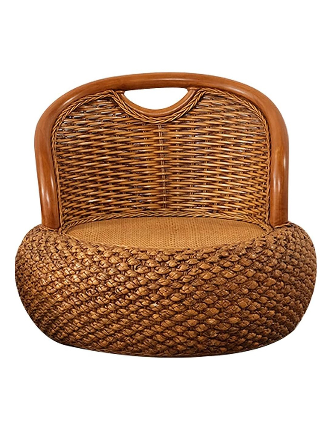 - MATERIAL Y TAMAÑO: Respaldo hecho de ratán, ecológico y natural, no fácil de deformar o colapsar, bien soporta la prueba del tiempo, seguro y duradero de usar; asiento hecho de vid narciso y estera de ratán, amigable con la piel y transpirable. Altura total: aproximadamente 16.93 pulgadas (43 cm); altura del asiento: aproximadamente 7.09 pulgadas (18 cm); diámetro: aproximadamente 19.69 pulgadas (50 cm), lo suficientemente grande para acomodar a un adulto o un niño