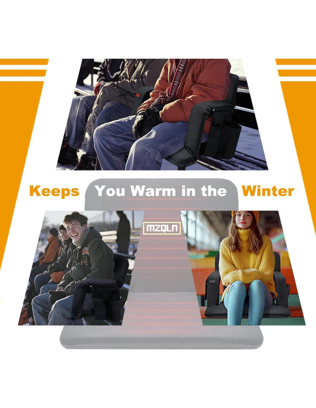 - COMODIDAD PERSONALIZADA: Nuestra silla de estadio calentada de gradería presenta lo último en sistemas de calefacción de control de doble zona que te permiten ajustar independientemente la temperatura del respaldo y el cojín para flexibilidad y eficiencia energética. Usa el cargador USB para experimentar horas de calor reconfortante que te mantendrá cómodo incluso en clima frío. Elige entre 3 niveles de calor (alto, medio o bajo) con una temperatura máxima de 125F (51.67C). NOTA: La fuente de energía móvil está colocada en el bolsillo del respaldo