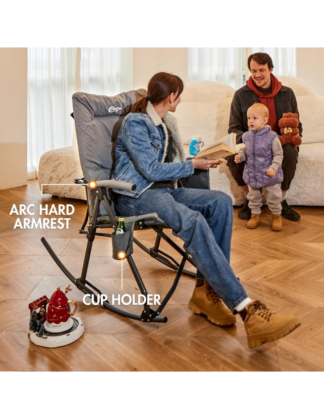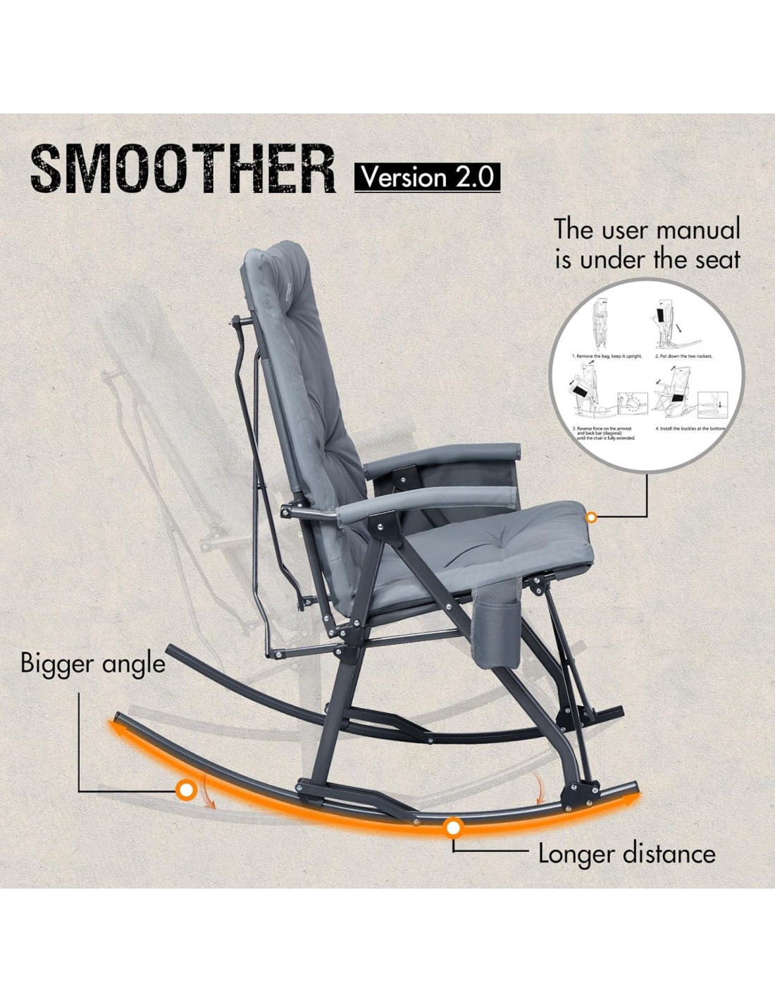 - FÁCIL DE LEVANTAR: Estas sillas mecedoras para camping cuentan con un asiento y respaldo acolchados que brindan comodidad durante todo el día. Los resistentes reposabrazos duros te brindan soporte adicional al sentarte o levantarte, lo que resulta especialmente conveniente para usuarios más altos, personas de mayor tamaño o miembros mayores de la familia.