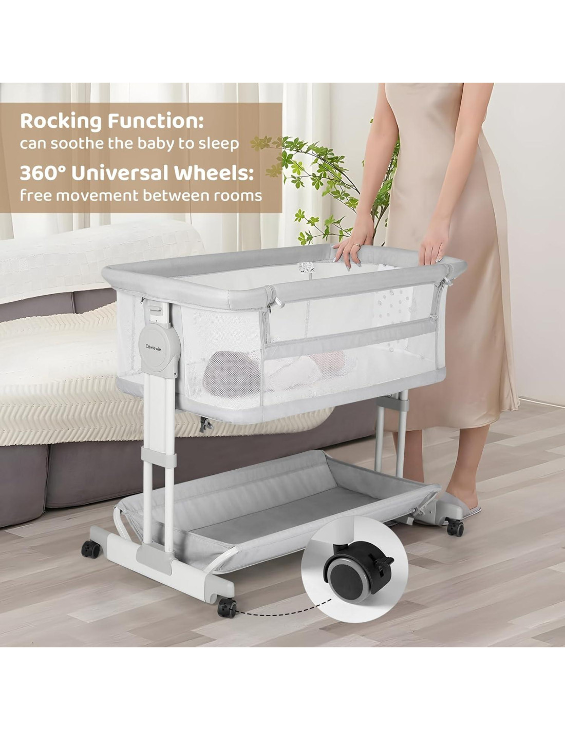 - Cuna de Lado Ajustable en 7 Alturas + Ruedas Suaves: ¡Conoce a tu compañero de guardería definitivo! Esta cuna para bebés certificada por ASTM/CPSIA cuenta con 7 niveles de ajuste de altura (65.0 cm - 76.7 cm) para alinearse perfectamente con cualquier cama de adulto. Rueda sin esfuerzo de habitación a habitación con 4 ruedas de auto-bloqueo, ¡sin complicaciones de frenos! Levanta para deslizar, baja para estabilizar, perfecto para mamás de cesárea o alimentaciones nocturnas.