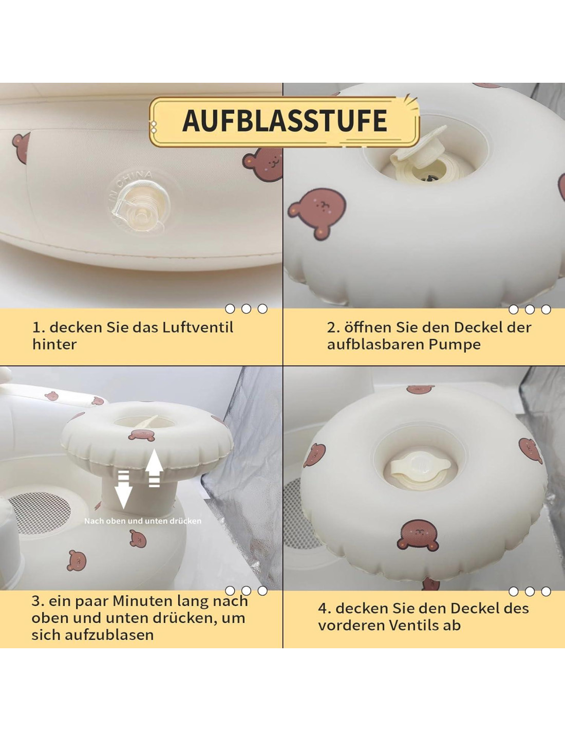 - Silla Inflable Multifuncional para Bebé: Este versátil asiento de piso para bebés se adapta a una variedad de actividades, ya sea sentarse, alimentarse, jugar o disfrutar de la hora del cuento. Incluso se transforma en un práctico asiento para la playa o camping, ¡siendo perfecto para aventuras de viaje! Con su diseño portátil, su pequeño puede explorar y disfrutar de su entorno de manera segura, brindándole tranquilidad y flexibilidad donde quiera que lo lleven sus viajes.