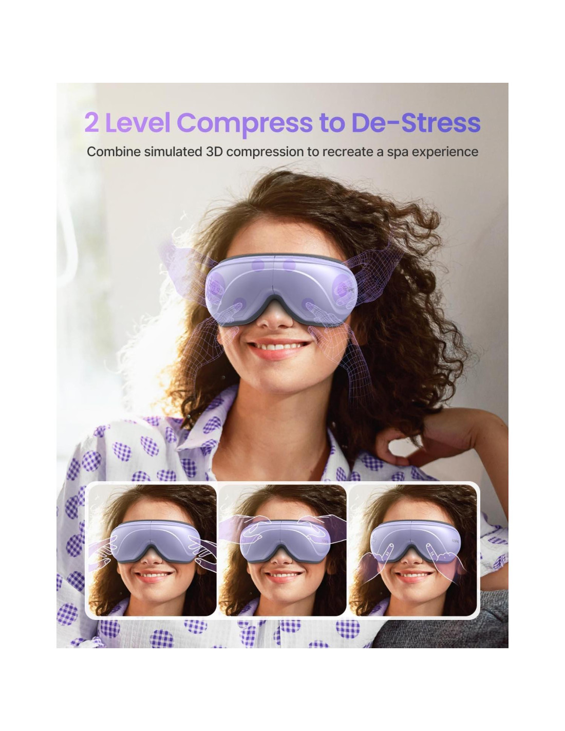 - 2 Niveles de Compresión y Configuraciones de Calor: Elija entre 2 configuraciones de intensidad de compresión ajustables para aumentar su estado de calma. Active un calor reconfortante de 104F (40C) o obtenga un calor más profundo de 113F (45C) para ayudar con la hinchazón ocular, ojos secos y más.