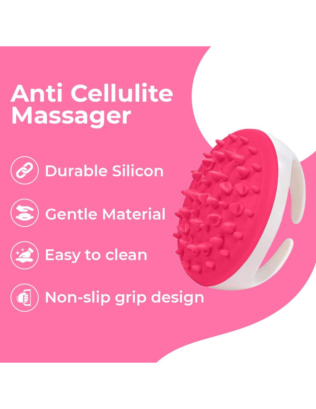- COMBATE LA CELULITIS: El masajeador anticelulitis combate la celulitis y ayuda a tu piel a liberar desechos metabólicos y toxinas. Siempre usa crema o aceites anticelulitis para obtener los mejores resultados.