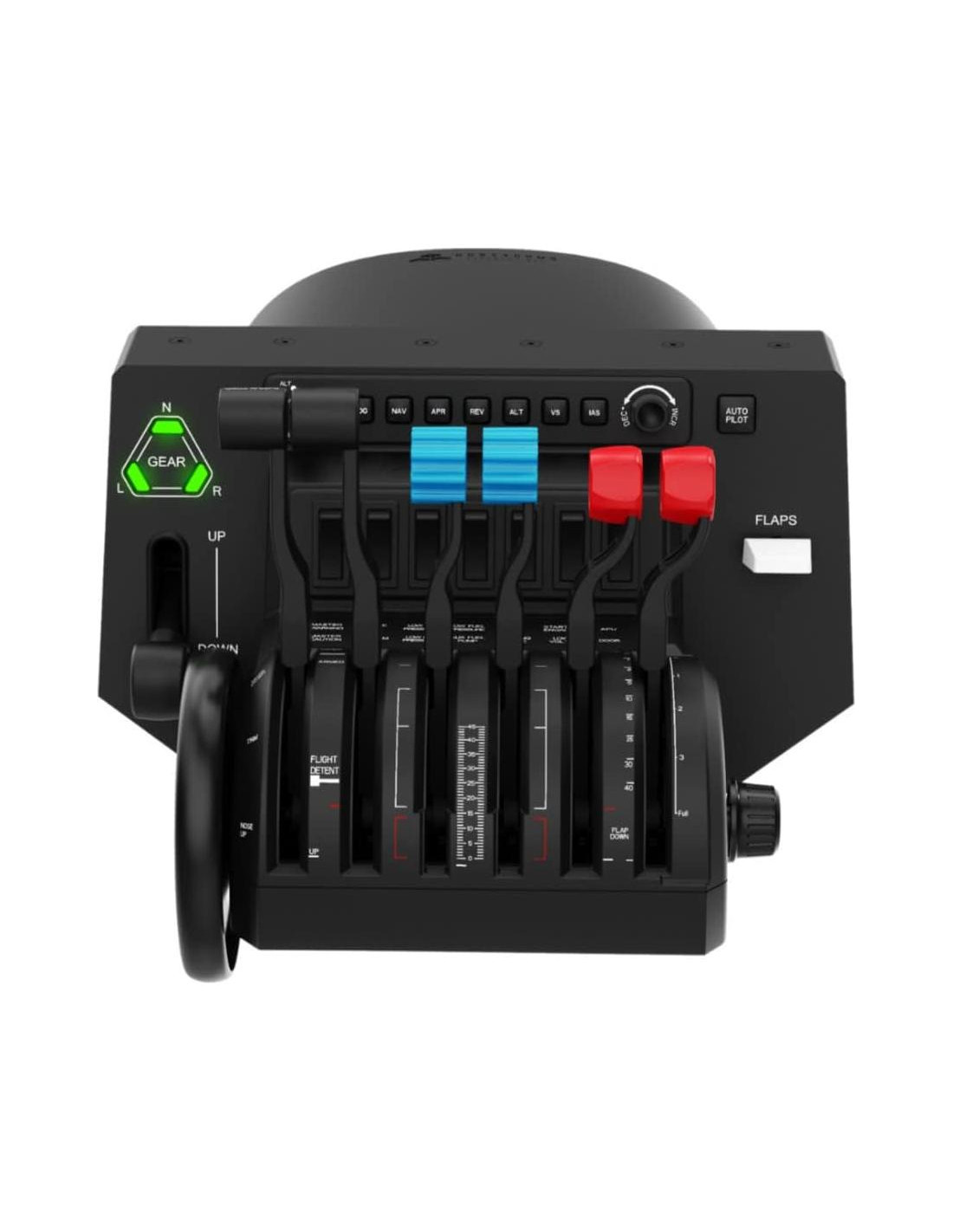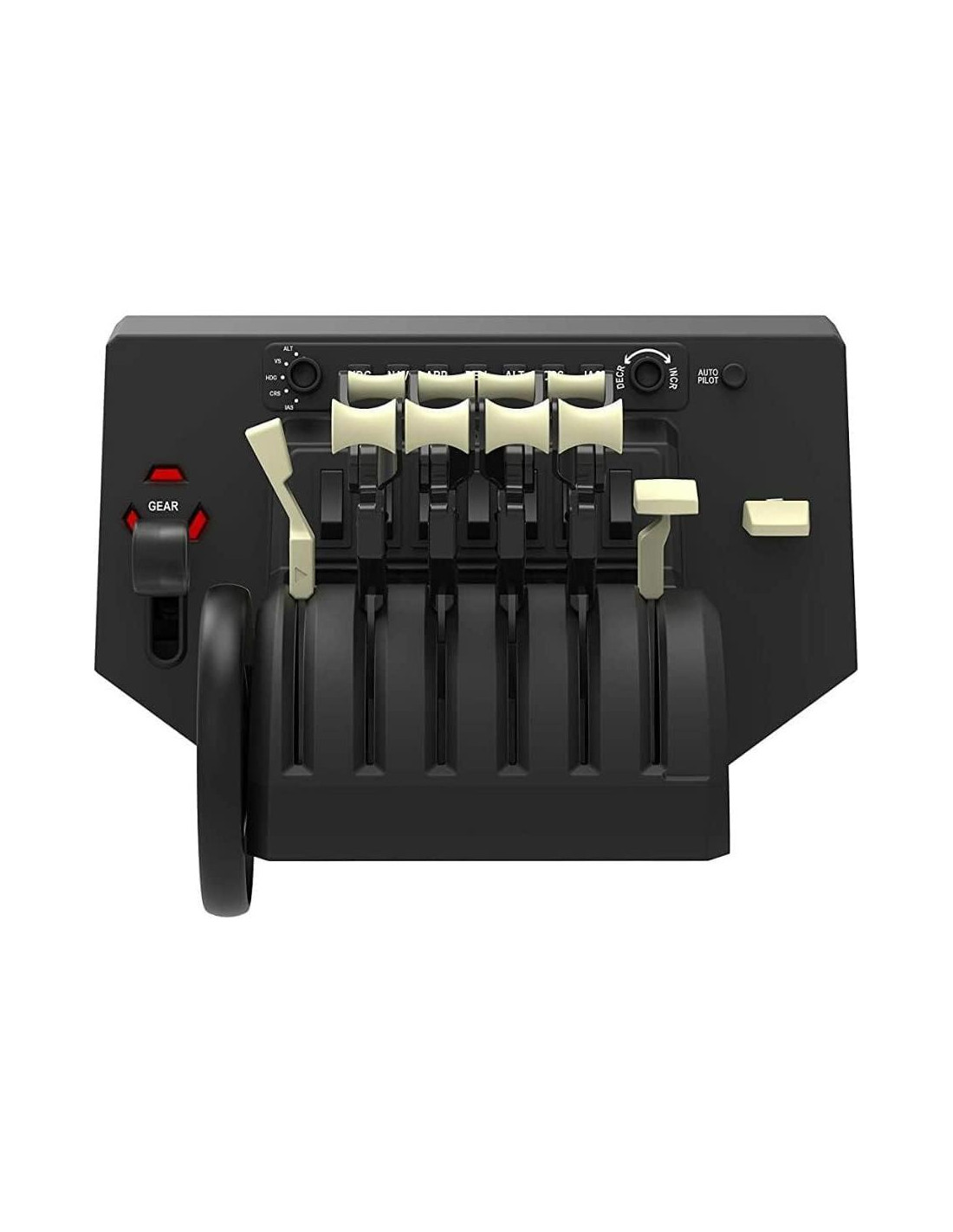 6 Palancas Comerciales con flaps y reversores de empuje 6 Palancas de Aviación General con botón TOGA Panel de indicadores con 7 interruptores programables 14 luces de advertencia Palanca de flap de Aviación General Piloto automático con botones retroiluminados Tensión de palanca ajustable Palanca de tren de aterrizaje con luces indicadoras LED