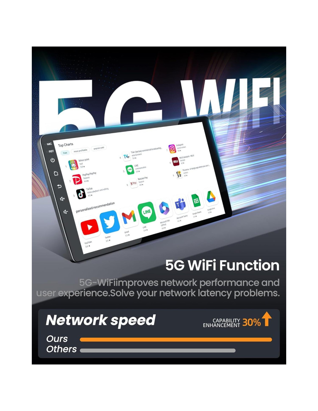 - [CarPlay y Android Auto Inalámbricos] Soporta CarPlay y Android Auto, conexión inalámbrica entre radio y smartphone. Comparte funciones de navegación/música/radio y otras aplicaciones del teléfono móvil. Soporta WiFi 5G, conecta a tu teléfono móvil de manera más estable y rápida, y usa la radio del coche como una tableta