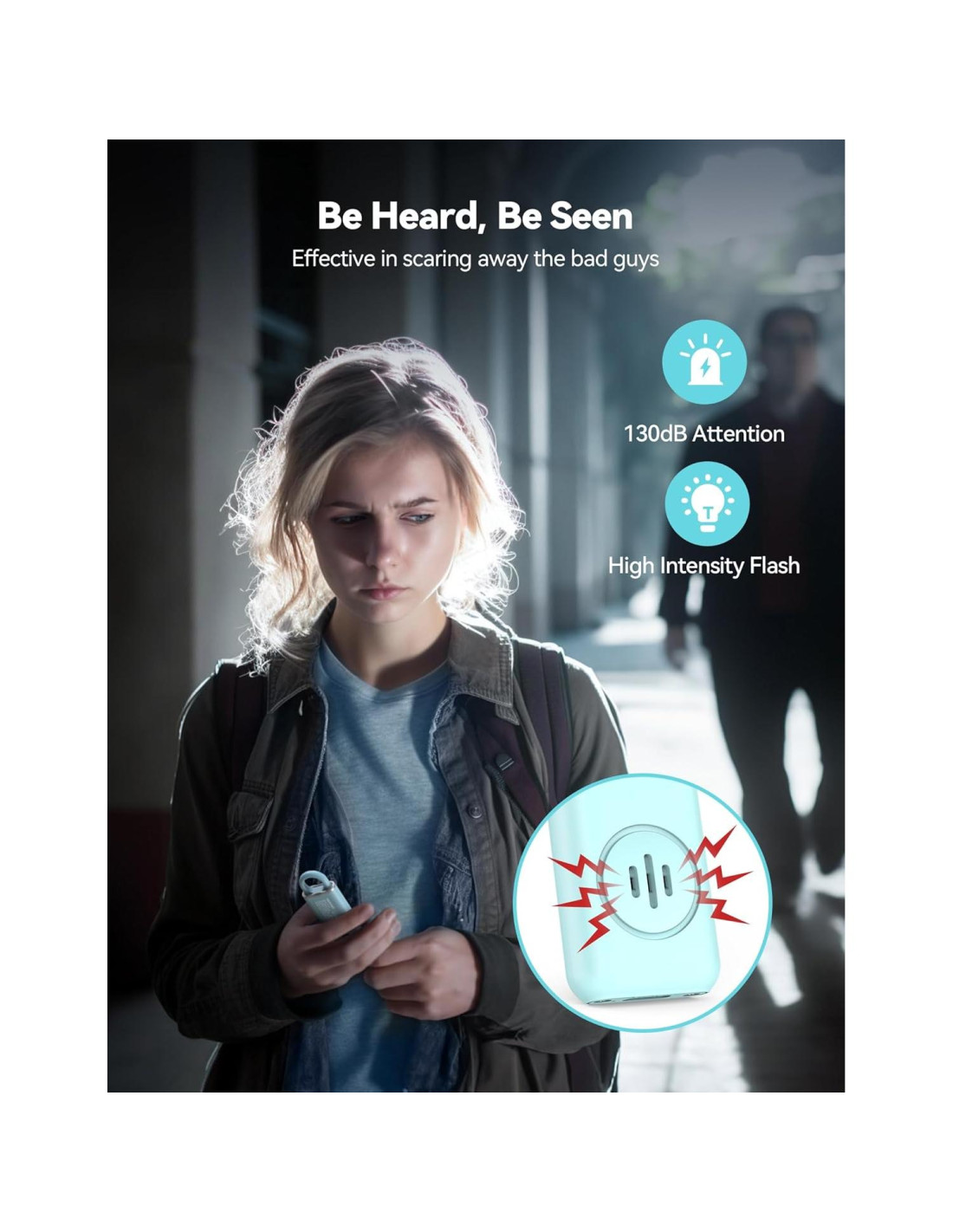 - 130dB Sirena Fuerte y Luz Estroboscópica. Experimenta una seguridad inigualable con la sirena de 130 dB de nuestra alarma personal, diseñada para causar un gran malestar y disuadir a los agresores de manera efectiva. Junto con una luz estroboscópica de alta intensidad, interrumpe la visión del atacante, convirtiéndola en una herramienta esencial para estudiantes, ancianos, niños, mujeres y trabajadores nocturnos para pedir ayuda en cualquier lugar y en cualquier momento.