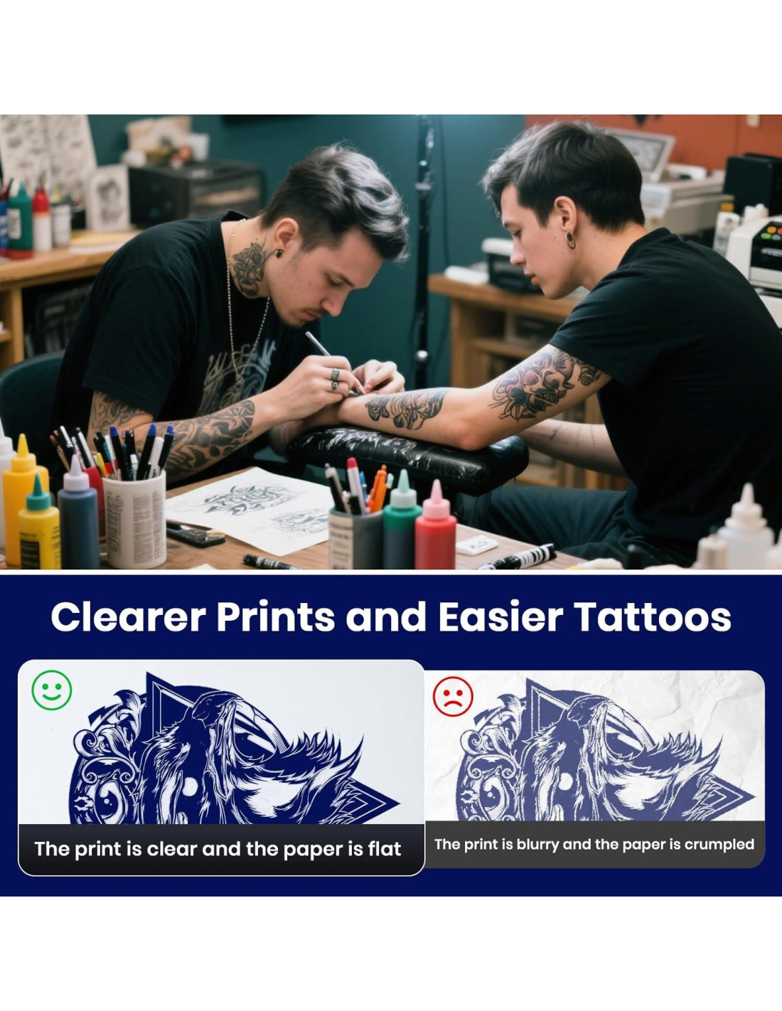 - Calidad Excepcional e Impresión sin Tinta: Esta impresora de plantillas de tatuaje premium utiliza tecnología térmica avanzada para ofrecer diseños y líneas nítidas y precisas. Di adiós a los atascos de tinta y a la molestia de la limpieza, asegurando una experiencia fluida y eficiente para los artistas de tatuajes profesionales. Esto te permite concentrarte completamente en crear tatuajes temporales o permanentes de alta calidad para tus clientes.