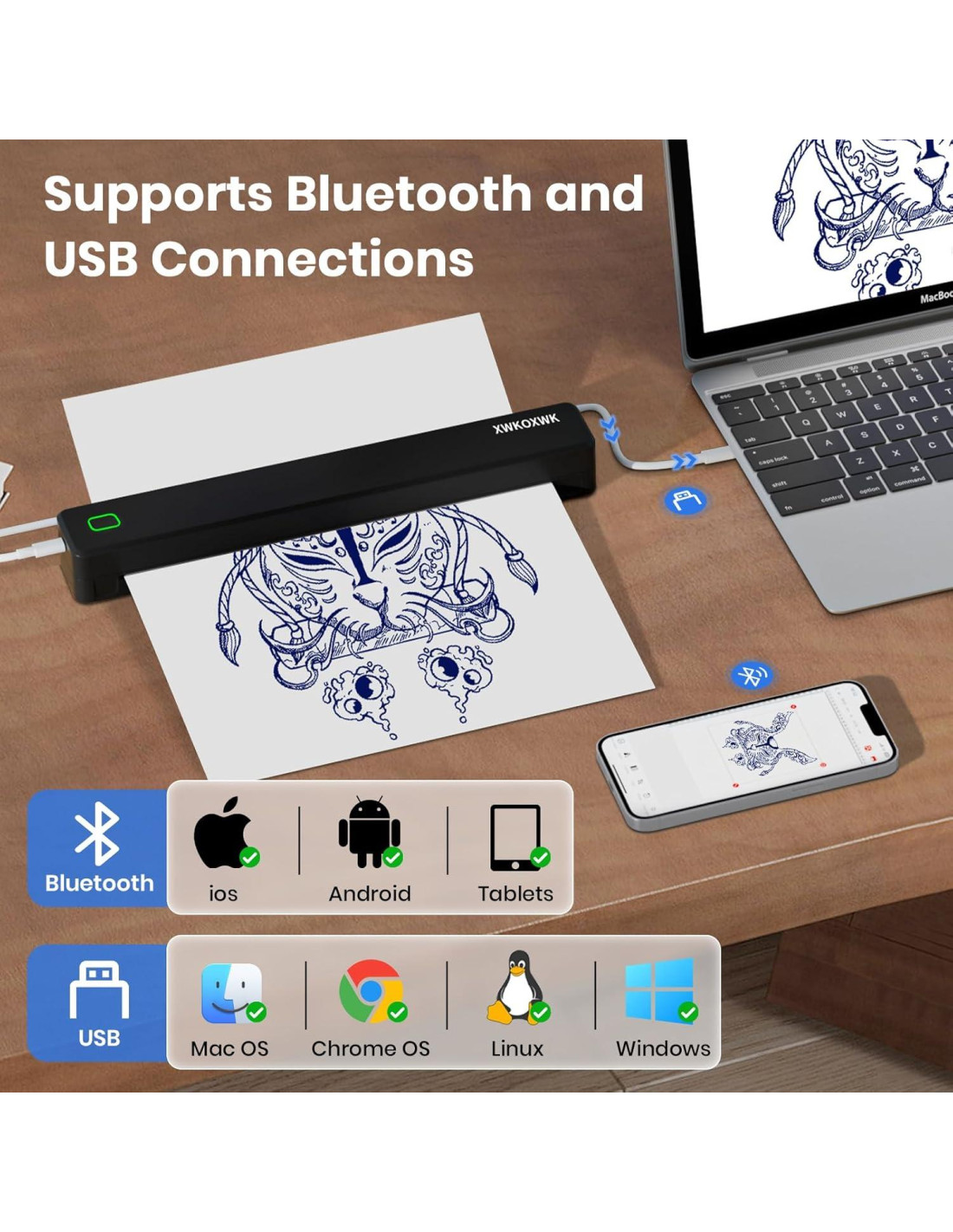 - La Impresora de Tatuajes Compacta es un Kit de Tatuaje diseñado cuidadosamente para todas tus necesidades de tatuaje. Esta innovadora impresora de plantillas térmicas cuenta con un diseño ultraligero y sin cables, pesando apenas 0.5 kilogramos (1.1 libras) y ocupando solo el 20% del espacio de las máquinas de transferencia de tatuajes tradicionales. Su batería recargable incorporada ofrece libertad de cables de alimentación, proporcionando una comodidad y facilidad de uso excepcionales para los artistas de tatuajes móviles.