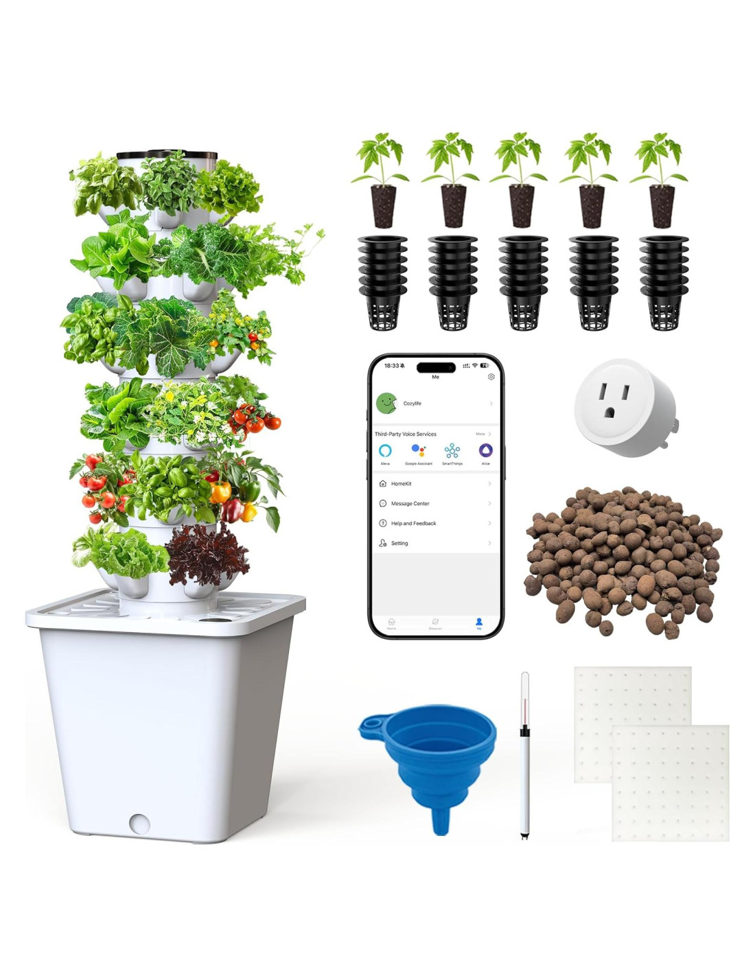- Cree fácilmente su propio jardín interior - perfecto para hogares, apartamentos y pequeños jardines. El diseño compacto del kit de sistema de cultivo hidropónico SJZXUV maximiza el espacio vertical, permitiendo cultivar hasta 30 plantas en esta torre de jardín blanca en solo 1 pie cuadrado.