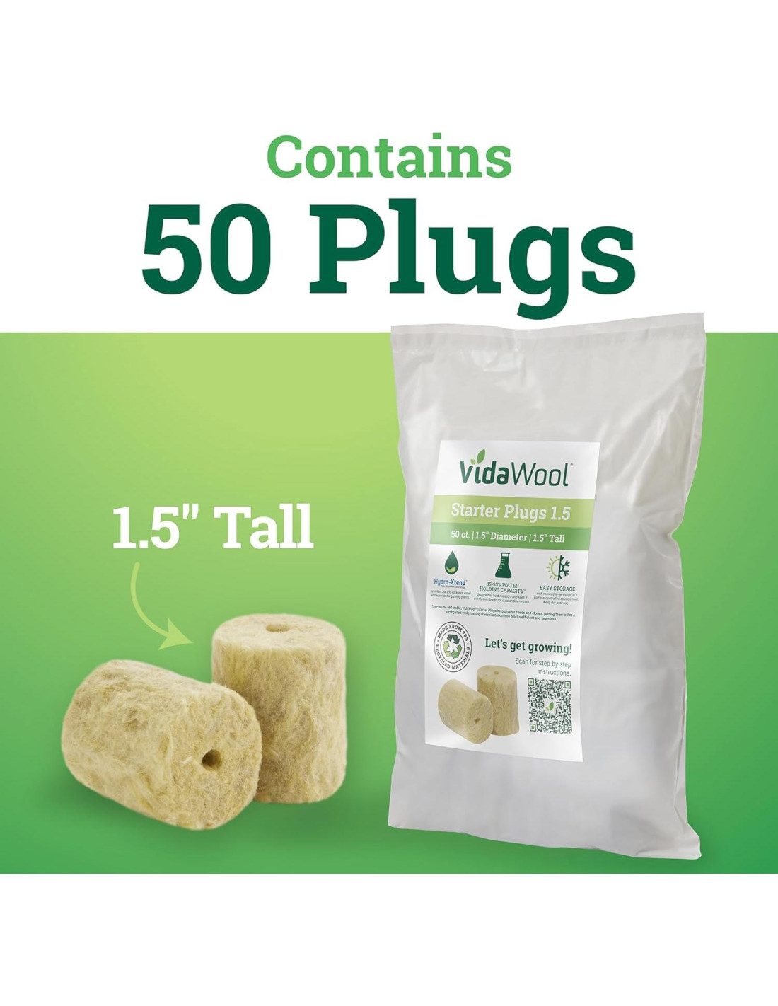 - DISEÑADO CON CONSCIENCIA: Los tapones de inicio de semillas VidaWool están diseñados con tecnología Hydro-Xtend para una distribución uniforme de agua y nutrientes. Con una capacidad de retención de agua del 85-95%, los tapones se hunden en menos de 3 segundos, promoviendo un uso eficiente del agua durante el crecimiento de las plantas. (Evaluación de Rendimiento de VidaWool Vine, Mayo 2024)