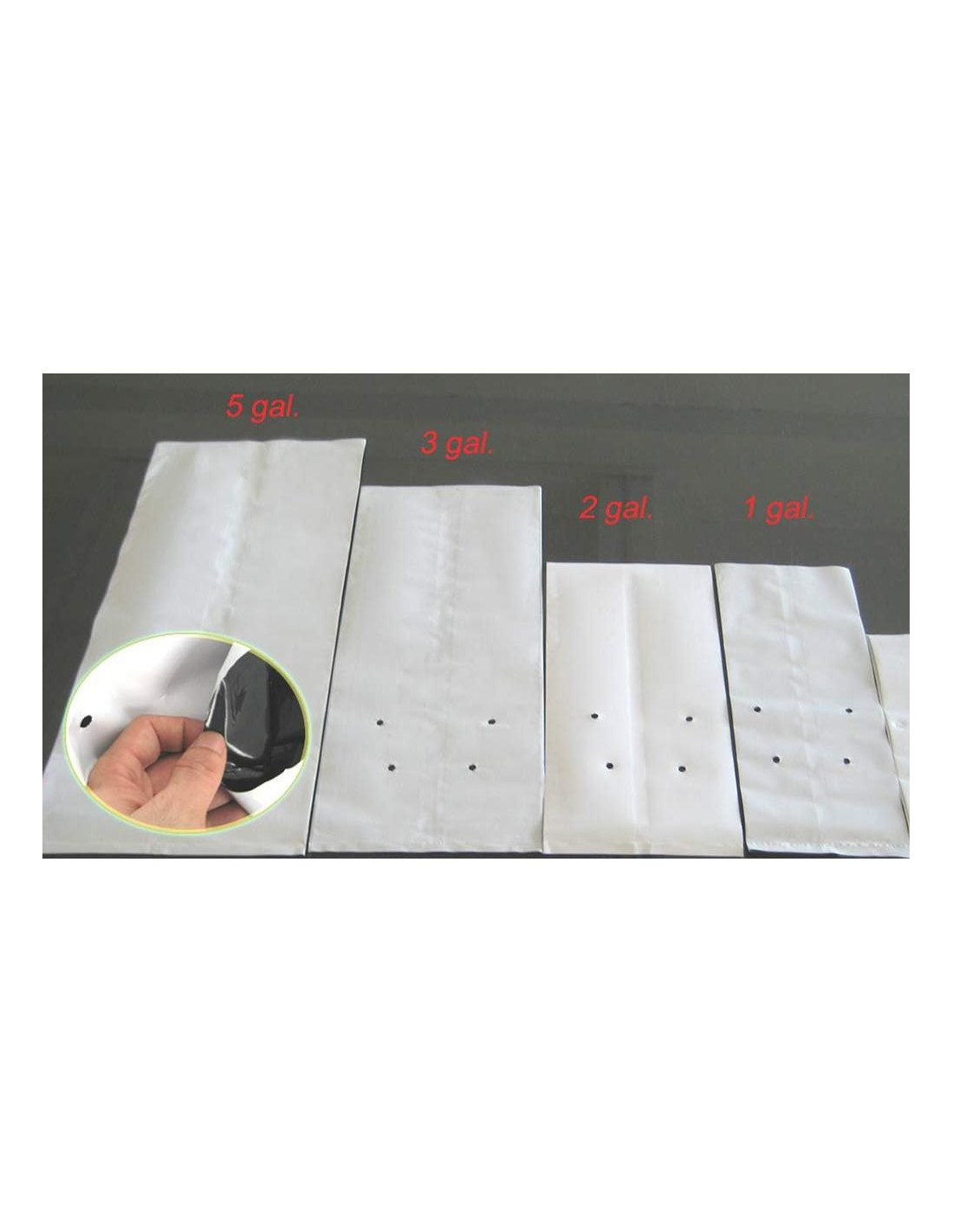 - Estas Bolsas de Cultivo Negras y Blancas OPACAS de 0.5 Galón se venden en paquetes de 100 piezas. Cada tamaño es Longitud Plana x Ancho Frontal Plano x Ancho Lateral Plano = 12.25 x 5.5 x 4.75 pulgadas