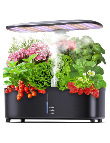 - [Luces de Temporización Inteligente, 5X Más Rápido el Crecimiento] Nuestro kit de jardín interior viene con luces LED de espectro completo y 3 modos de crecimiento: plántula, vegetativa y floración. Acelera el crecimiento de las plantas hasta 5 veces en comparación con el suelo, siendo perfecto para condiciones invernales o de poca luz. Con un temporizador programable, solo configúralo una vez y deja que tus plantas florezcan con poco o ningún esfuerzo.