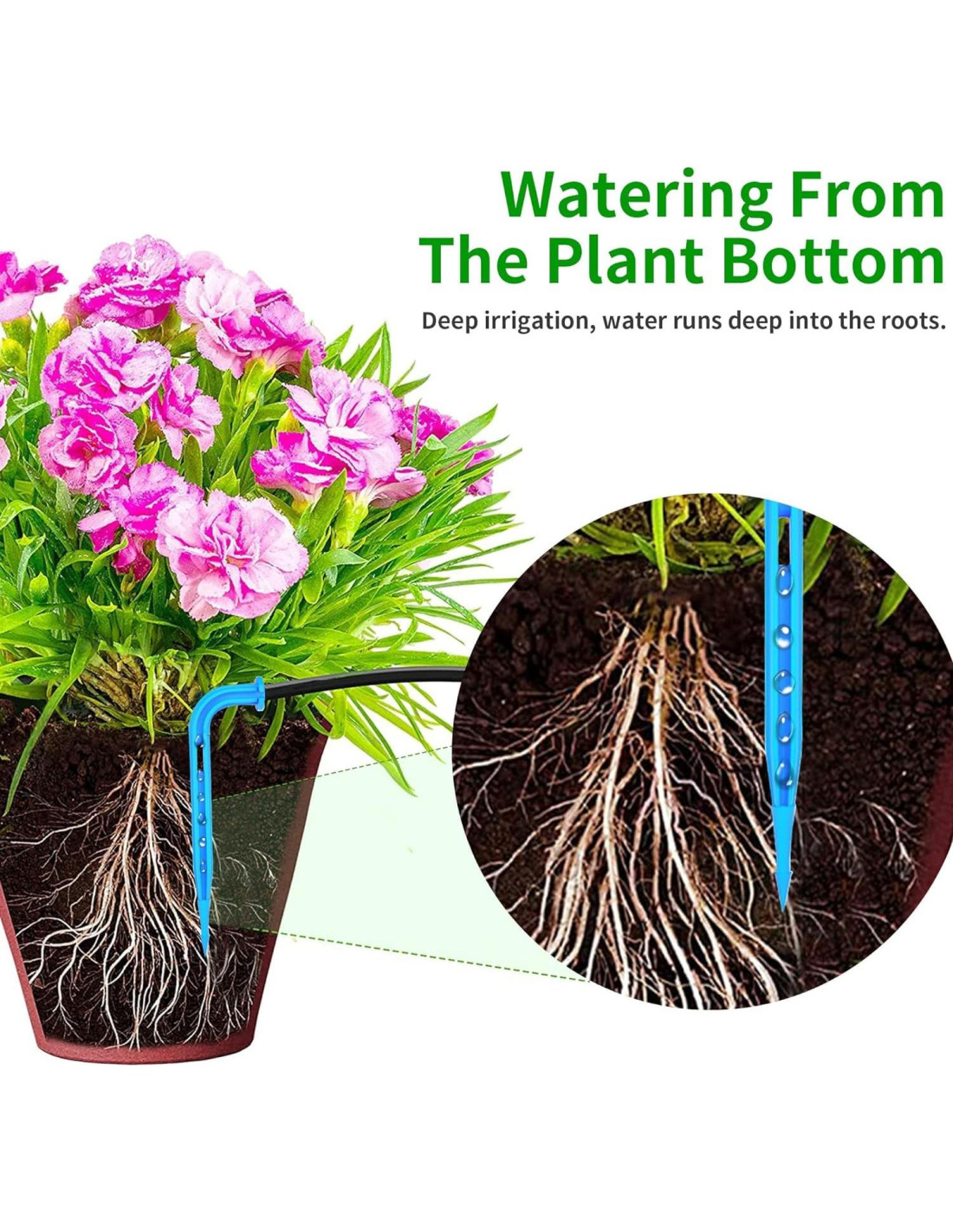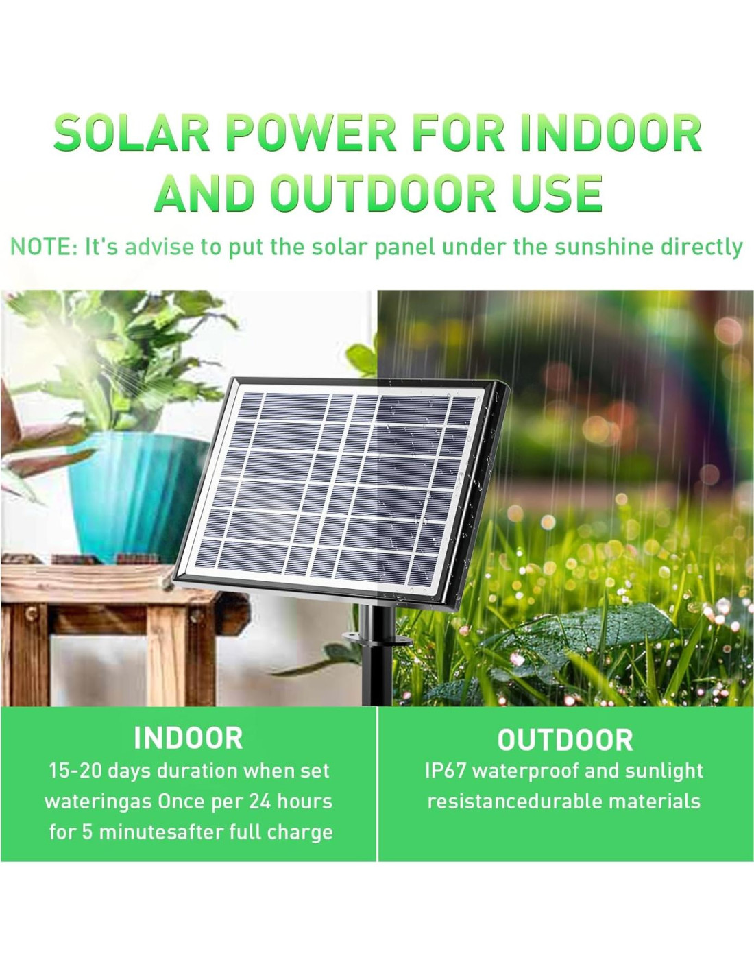 - Fácil de instalar y usar: El sistema de riego por goteo solar es fácil de instalar. Puedes personalizar el número de enchufes que necesitas, y solo toma unos minutos instalar el sistema de riego. No se requieren herramientas para la instalación. Aquí hay algunos consejos útiles: Antes de abrir el enchufe, sumerge el extremo de la manguera en agua caliente durante un minuto o usa un encendedor para calentarla. Esto facilitará la inserción del enchufe.