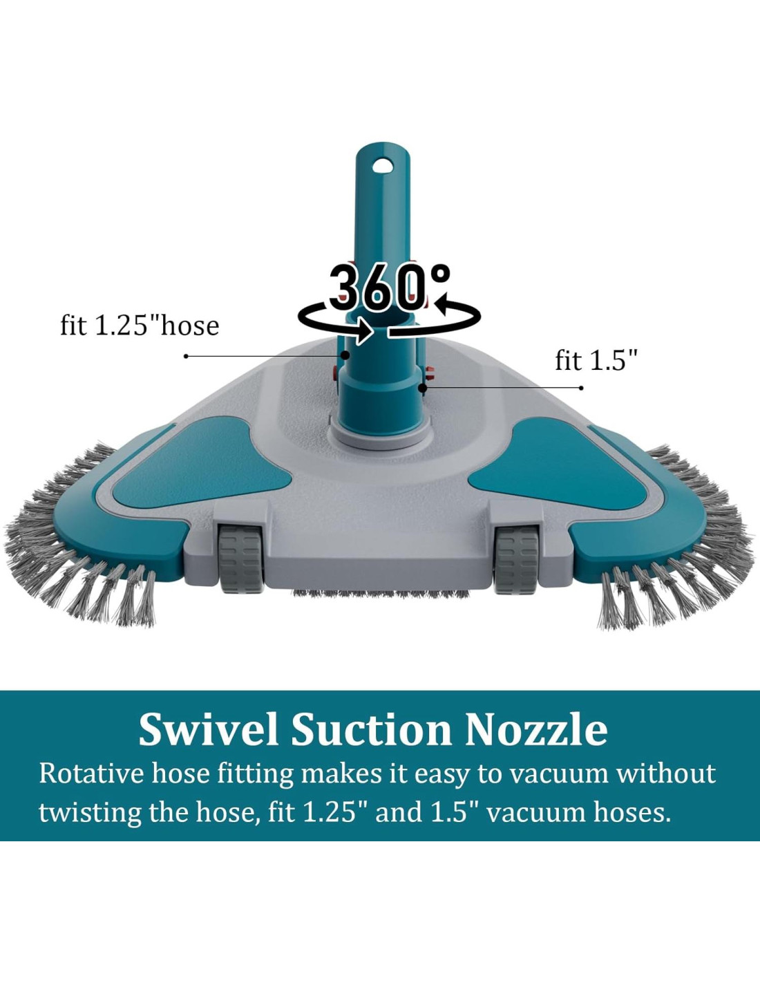 - Ajuste Universal - La conexión giratoria del cabezal de vacío de la piscina se adapta a mangueras de vacío estándar de 3.2 cm y 3.8 cm (comprar por separado), evitando que la manguera se enrosque o retuerza. Ideal para piscinas sobre el suelo y enterradas.