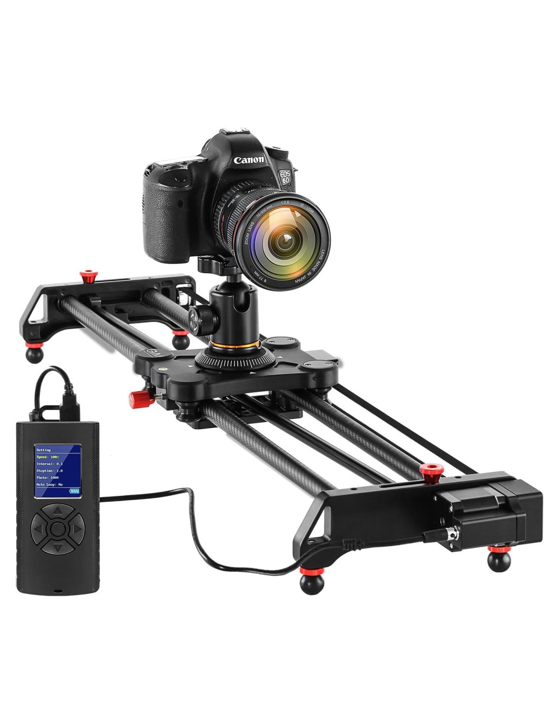 - Características Múltiples puertos de tornillo de 1/4" y 3/8" El deslizador de cámara motorizado está hecho de fibra de carbono y cuenta con un ensamblaje de deslizamiento estable, el deslizador está equipado con múltiples puertos de tornillo de 1/4" y 3/8" para su uso con diseñado para montarse en la mayoría de los trípodes, utilizando orificios de tornillo para disparo vertical, horizontal y a 45.