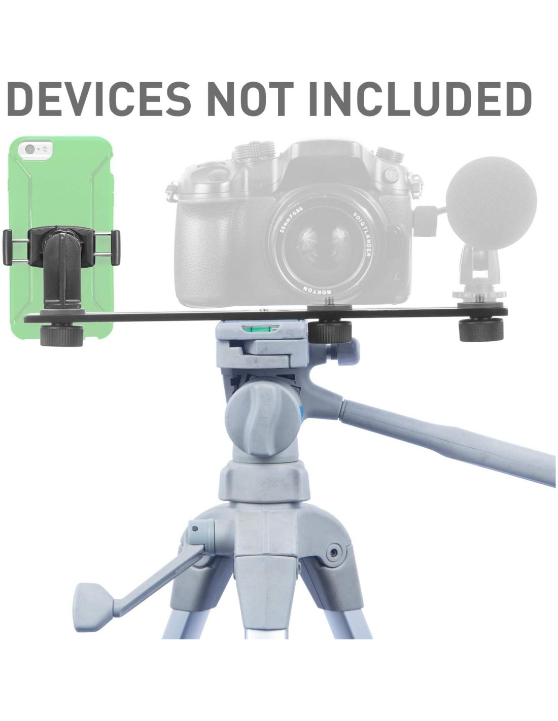 - Agrega fácilmente accesorios adicionales para cámara con esta barra deslizante de tornillo triple para cámara. Esta barra se conecta a un trípode o soporte con una rosca de tornillo para cámara hembra de 1/4 de pulgada o una rosca hembra de 3/8 de pulgada.