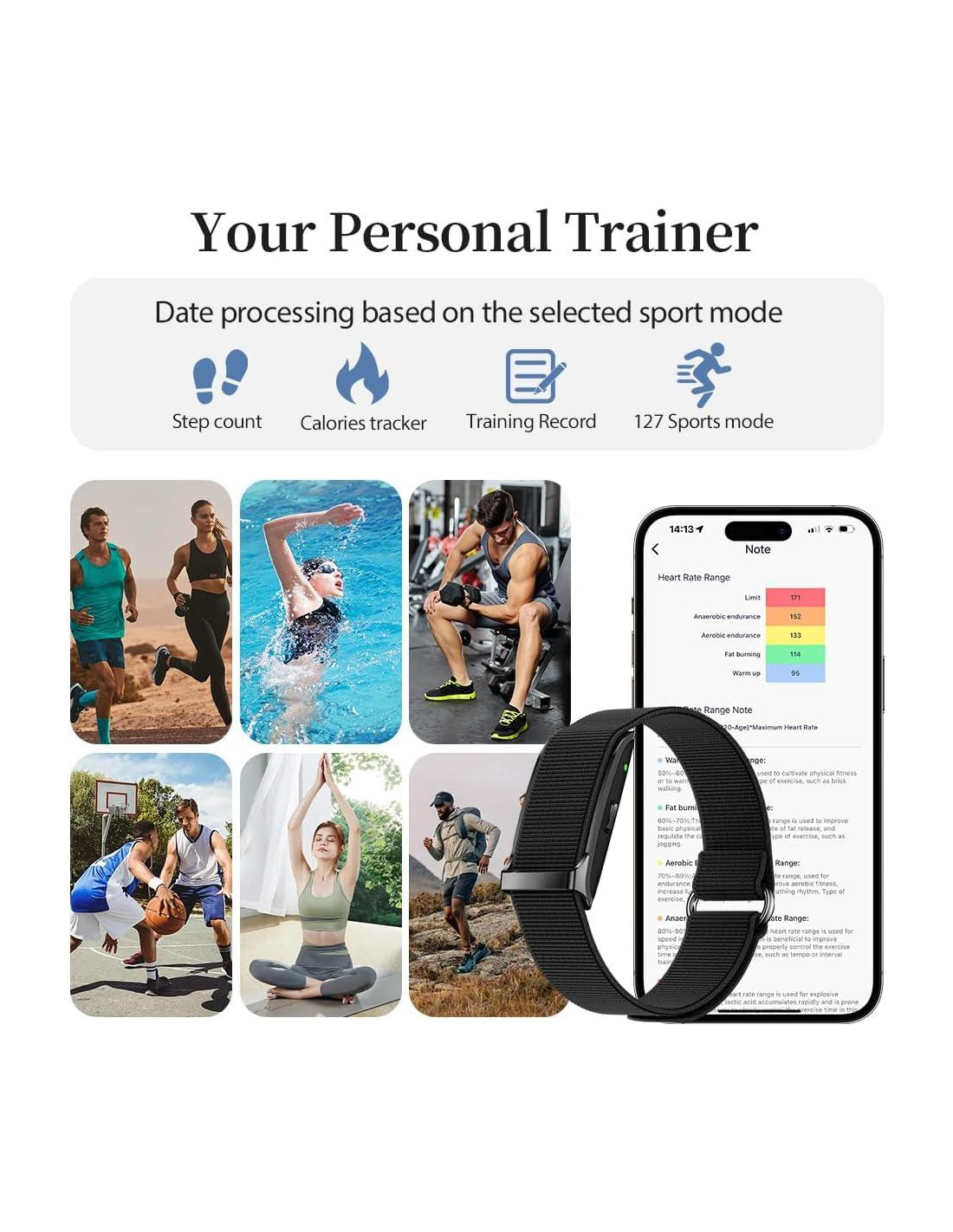 - Nuevo Material Ultra-Ligero: Nuestro rastreador de fitness inteligente está fabricado con materiales ligeros y presenta un diseño compacto, asegurando que se ajuste perfectamente a tu muñeca para máxima comodidad. Con solo un clic para conectarlo a tu teléfono, puedes comenzar a gestionar fácilmente tu fitness y salud. El diseño sin pantalla es resistente a impactos, asegurando durabilidad y resistencia a la interferencia de luces, convirtiéndolo en un compañero confiable para todas tus actividades.