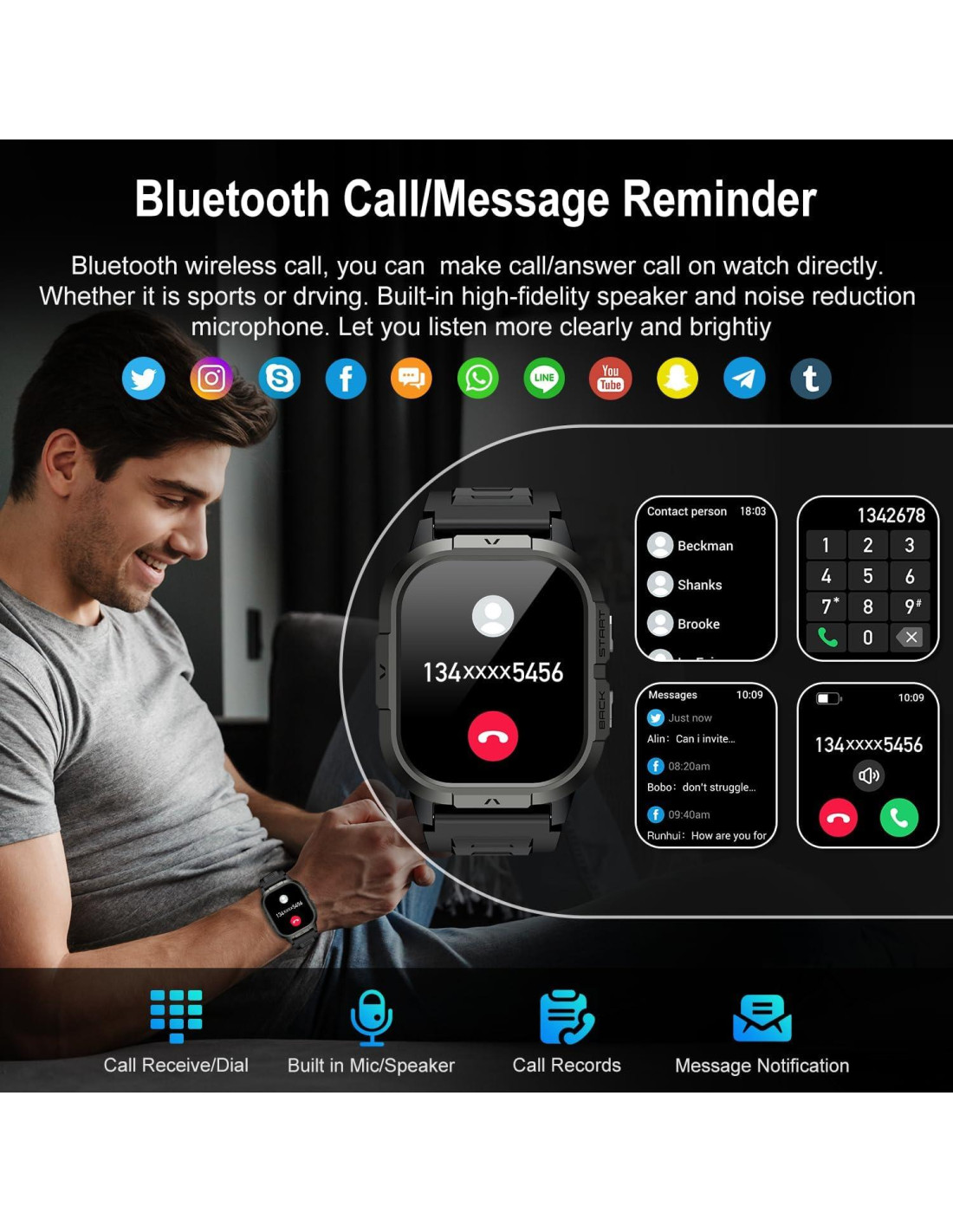 Relojes Inteligentes Tácticos para Hombres Relojes Deportivos para Hombres (hacer/responder Llamadas), Reloj Inteligente Impermeable IP68 con Monitor de Frecuencia Cardíaca Presión Arterial Spo2 Rastreador de Sueño