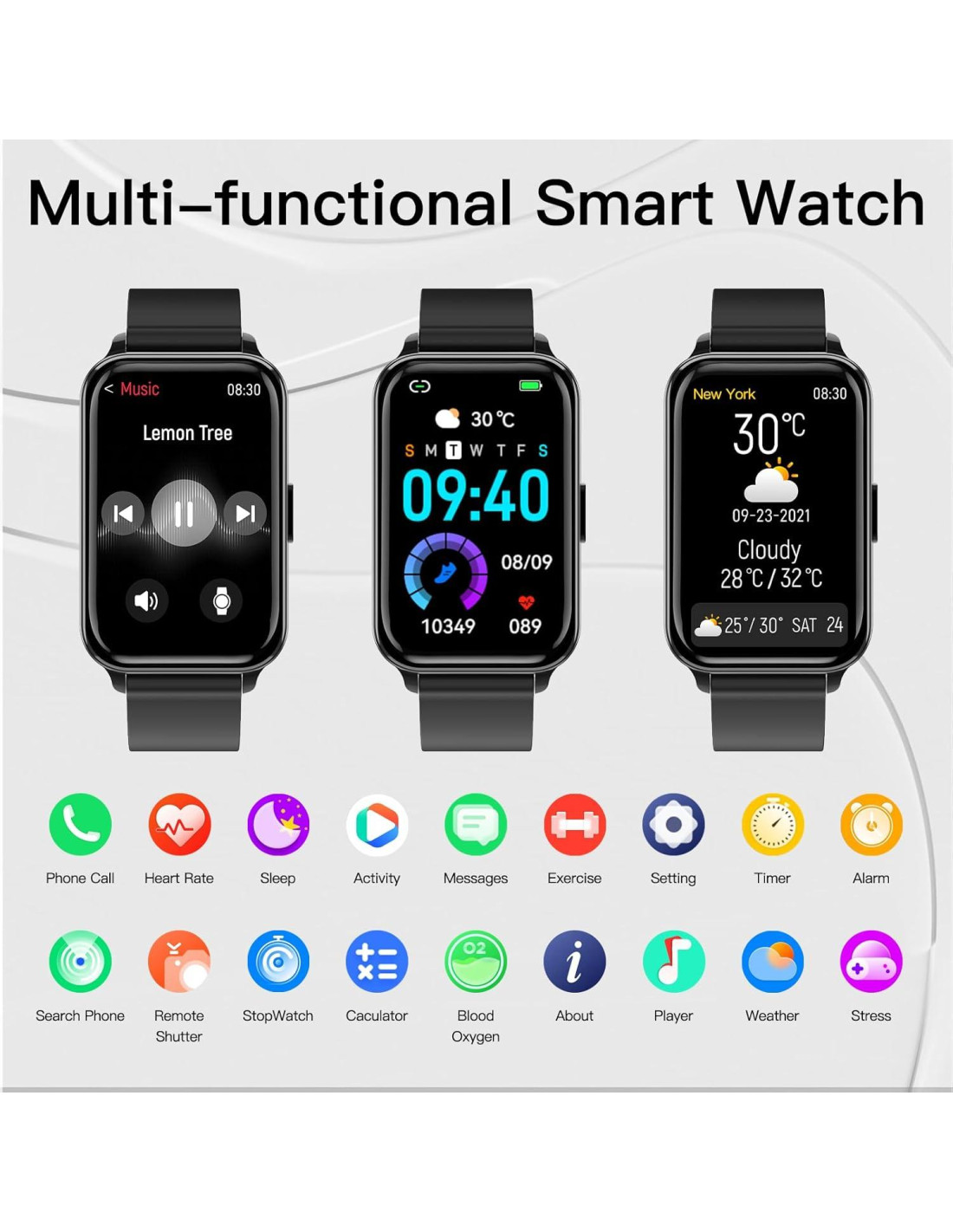 - Tu Asistente Personal de Vida El reloj inteligente fitness tracker está equipado con funciones ricas, como Pronósticos del Tiempo, Cronómetro, Temporizador, Control de Música, Ajuste de Brillo, Linterna, Encontrar Teléfono, Reloj Despertador, Control de Cámara, Calculadora, Recordatorio de Hidratación, Recordatorio de Sedentarismo, Modo No Molestar. Estas funciones pueden hacer tu vida conveniente y alegre.